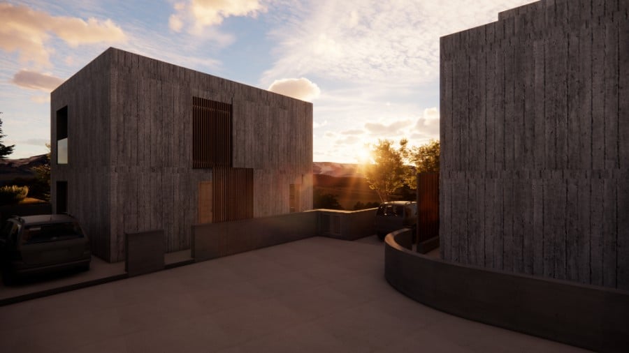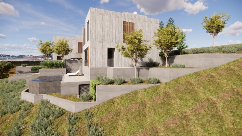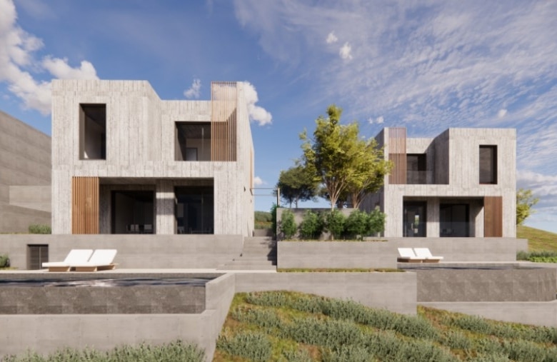 Unique residential project in the prestigious area of Konia, Paphos. This exclusive development features two exceptional villas, designed to offer a perfect blend of luxury, comfort, and contemporary architecture. Each villa is characterized by a sophisticated design with board-form concrete exterior walls, creating a modern aesthetic. The spacious interiors include three elegantly designed bedrooms and open-plan living areas that maximize space, functionality, and natural light. High-end materials and premium finishes ensure durability and refined elegance throughout the property. The outdoor spaces are thoughtfully designed, featuring beautifully landscaped gardens and a private swimming pool, ideal for relaxation and entertainment. Expansive verandas and carefully planned outdoor areas enhance the sense of tranquility, offering the perfect setting to enjoy the Mediterranean sun. Ideally located in one of Paphos’ most sought-after yet peaceful residential areas, these villas offer easy access to local amenities, international schools, and the city center while providing a peaceful and exclusive living environment.