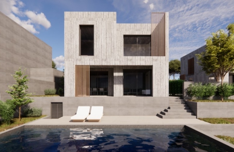 Unique residential project in the prestigious area of Konia, Paphos. This exclusive development features two exceptional villas, designed to offer a perfect blend of luxury, comfort, and contemporary architecture. Each villa is characterized by a sophisticated design with board-form concrete exterior walls, creating a modern aesthetic. The spacious interiors include three elegantly designed bedrooms and open-plan living areas that maximize space, functionality, and natural light. High-end materials and premium finishes ensure durability and refined elegance throughout the property. The outdoor spaces are thoughtfully designed, featuring beautifully landscaped gardens and a private swimming pool, ideal for relaxation and entertainment. Expansive verandas and carefully planned outdoor areas enhance the sense of tranquility, offering the perfect setting to enjoy the Mediterranean sun. Ideally located in one of Paphos’ most sought-after yet peaceful residential areas, these villas offer easy access to local amenities, international schools, and the city center while providing a peaceful and exclusive living environment.