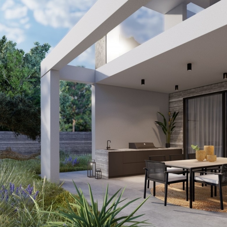 Choosing a home in this project will allow you to make the most of all that Konia, Paphos and Cyprus as a whole have to offer. This new development occupies a desirable site in Konia and comprises only ten exclusive villas of different sizes to serve different needs and wishes. At a glance you will recognize the residences’ streamlined contemporary design and high-end construction and finishing specifications. Take a closer look and your senses will absorb the key features of the site’s elevated location: Large verandas grant you panoramic views of Paphos town and the Mediterranean Sea, while the breeze tempers the atmosphere, keeping the air noticeably cooler than on the coast.