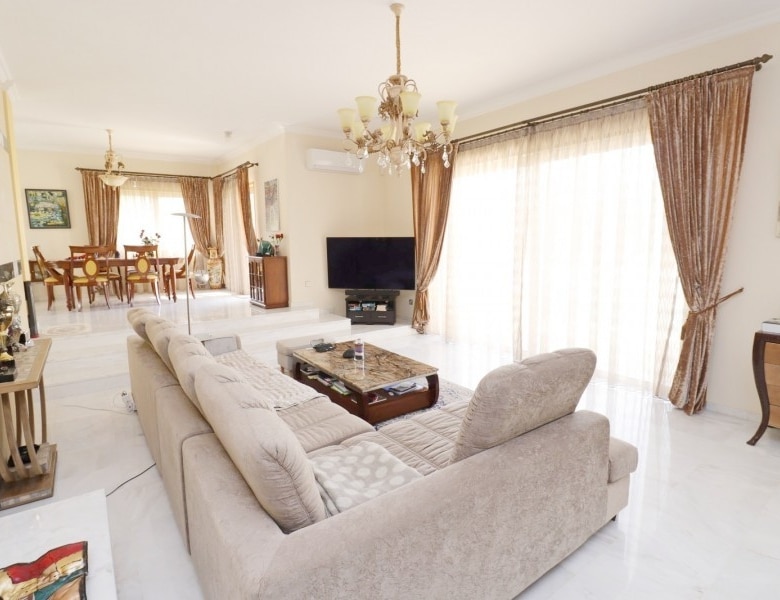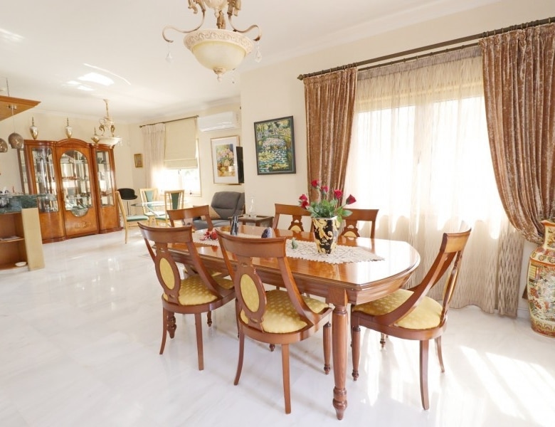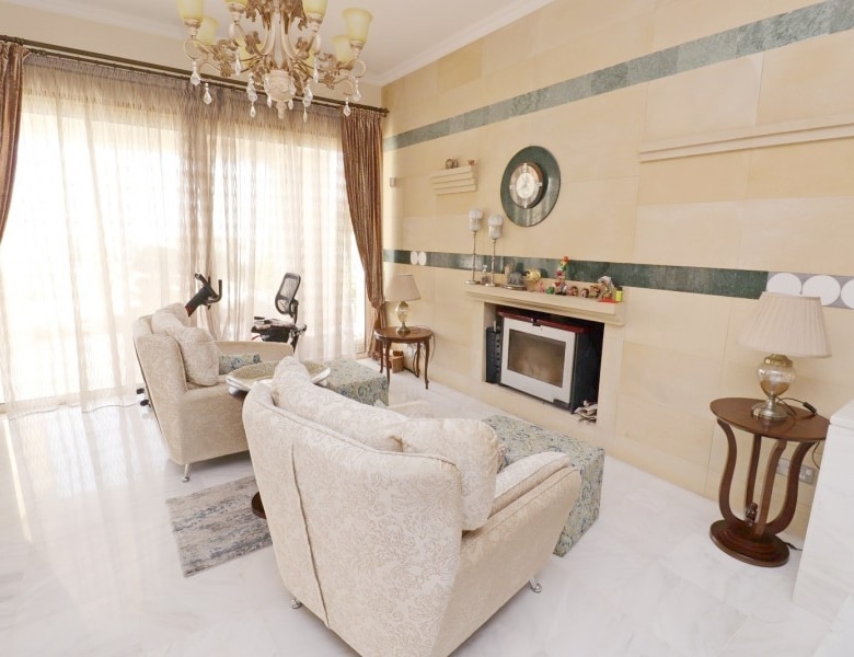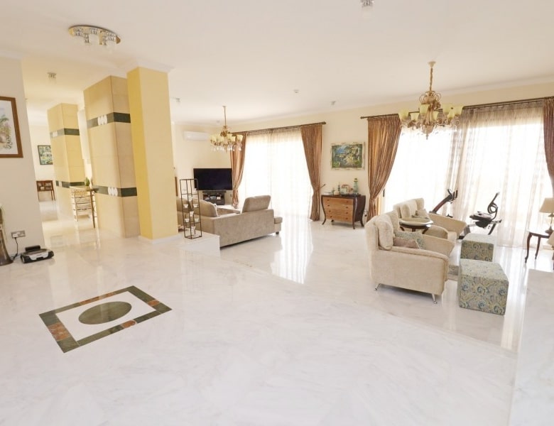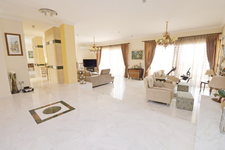 This is a truly unique property, situated in an exclusive neighborhood in the sought after Konia village of Paphos, with beautiful sea & mountain views. This home is within a few minutes’ drive to Paphos Town, to the beach, to the International School of Paphos , easy access to the highway and generally within close proximity to all amenities and services. No expense has been spared in the renovation of this home using the best materials, luxury finishes and many extras. The property has a double garage with electric doors and a covered parking area. Upon entering you will be immediately greeted by the beautiful marble floor and the very spacious areas. You will find the large lounge area and the separate relaxation area with a fireplace, the separate kitchen and the dining area with all the latest appliances and granite worktops. You will also find a small lounge area and the breakfast table. On this level you will also find the laundry room, the guest cloakroom and the access to the garage area.