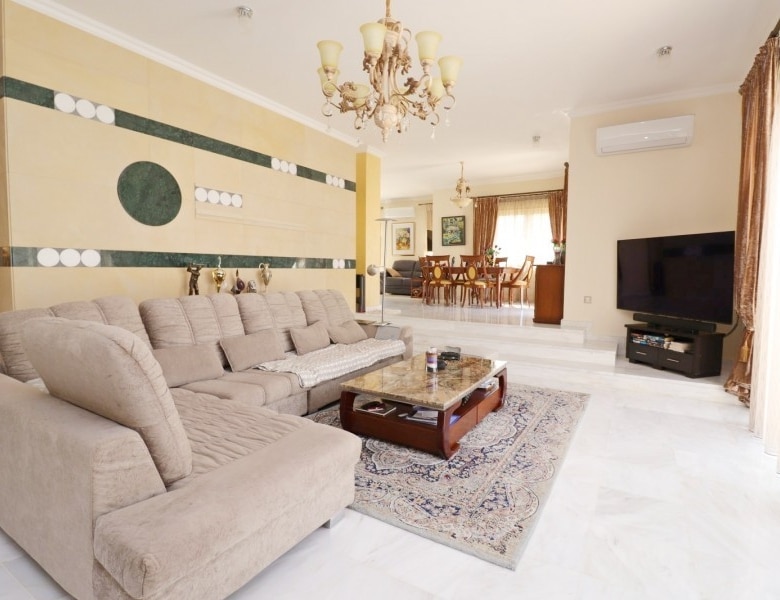 Taking the comfortable staircase to the 1st floor you will find the very spacious bedroom hall which takes you to the four bedrooms. The master bedroom is very spacious , offering walk in wardrobes , ensuite facilities, jacuzzi bath and a large balcony with sitting areas with beautiful sea and mountain views. You will also find the family bathroom with a bath and a shower. One of the 4 bedrooms is currently used as a study room. Taking the staircase to the lower ground floor you will find the 5th bedroom , the two bathrooms , the sauna, a lounge area and two storage rooms.
