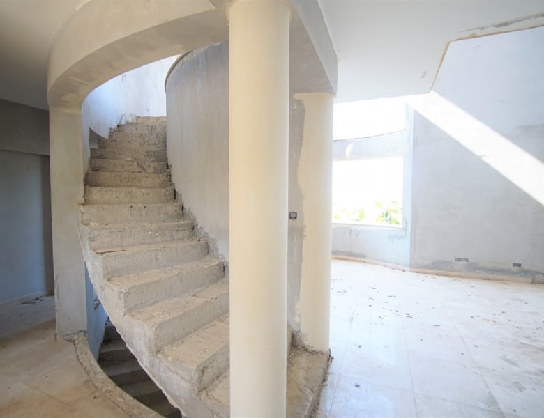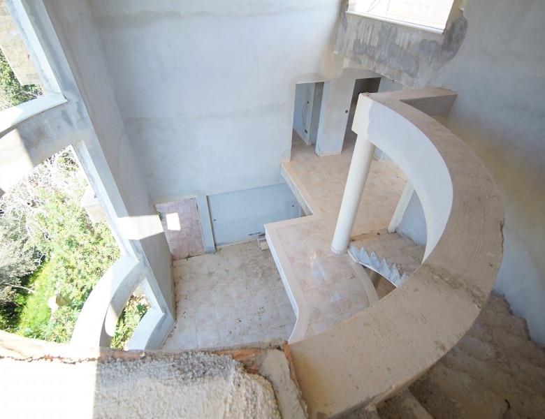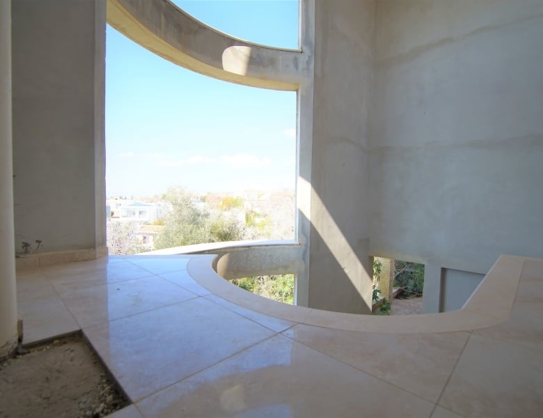 For sale big 5-bedroom 3-bathroom house with a panoramic sea view in Konia. Very nice and quiet location. A very unusual project of the house itself with many stairs and various rooms, such as a sauna and a wine cellar, and a spacious rooftop veranda with gorgeous views around. According to the plan, a swimming pool should be located on the territory, all plans and building permits are available.