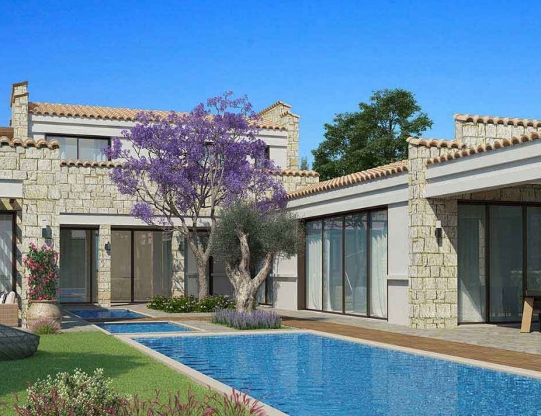 The property is an exclusive 3-bedroom villa for sale located in the famous Venus Rock Golf Resort. The design of the villa has been inspired by a perfect fusion of contemporary and Mediterranean architecture, using traditional materials such as stone, clay roof tiles, and wood in clean lines and large open spaces. The villa is designed on a large plot and enjoys a private swimming pool, spacious interior, and large terraces while having beautiful sea views of the Mediterranean.