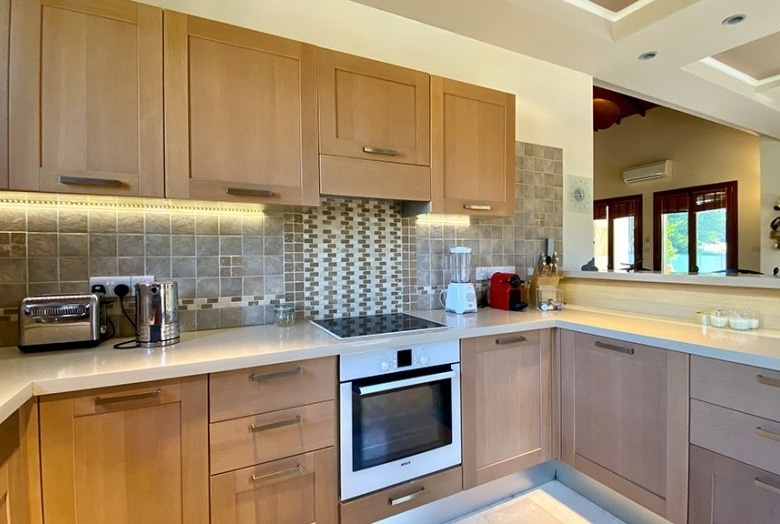 The property is entered via a short pathway to the hardwood front door. The door opens directly into the spacious living and dining area and open plan kitchen. Patio doors open out onto the terrace which has a barbecue area and ample space for alfresco dining.