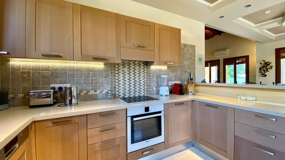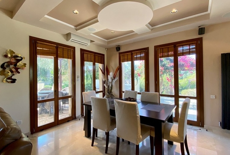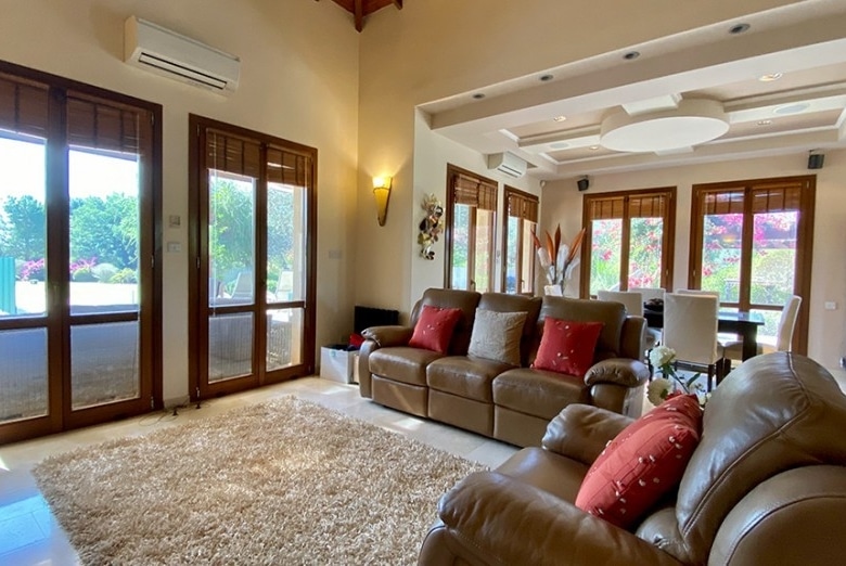 Villa was originally built in 2006 and completely refurbished and extended in 2015, this outstanding four bedroom family villa with private swimming pool is on a large plot of 1869m2 overlooking the 6th fairway of the golf course, and is for sale in excellent condition. The original Thalia design was a three bedroom villa but the extension has added a lower ground floor ‘state of the art’ cinema room, a self contained one bedroom annex and further parking behind electric gates.