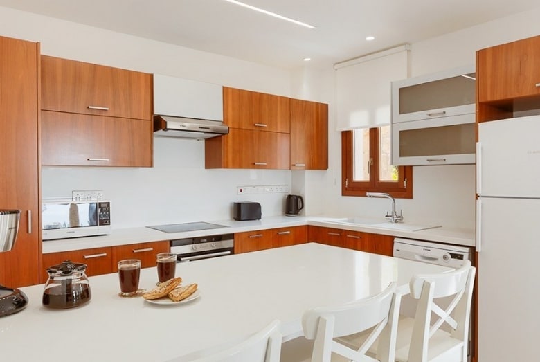 This detached villa is situated in a cul de sac opposite a green area and entry is via a footpath or driveway from the quiet residential road. The footpath leads to a large, covered porch area and an attractive hardwood double front door. Inside the villa, there is a hall area with 2 steps leading down into the living area. The living area has windows and patio doors on 2 sides as well as a fireplace, air conditioning, Italian marble flooring and a suspended ceiling with concealed lighting. The separate kitchen is fully fitted with all appliances, quality granite worktops and a bar style seating area.
