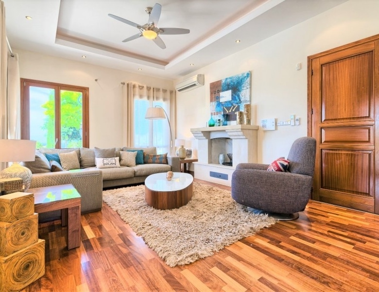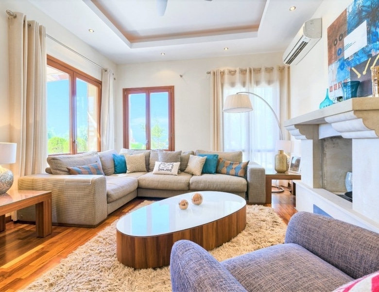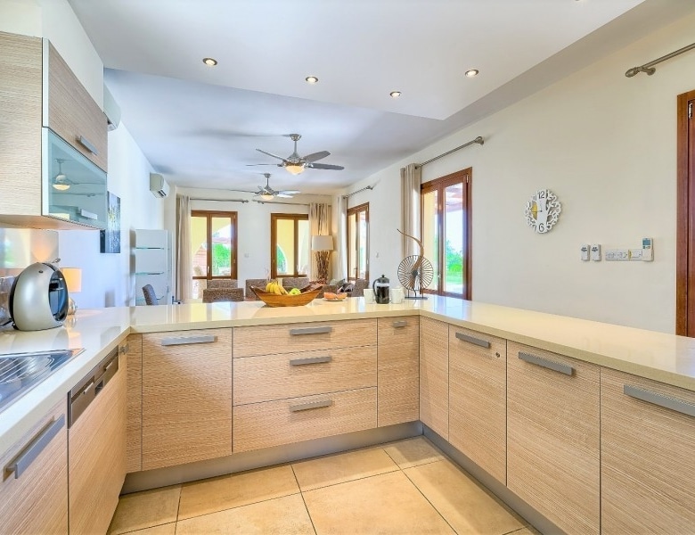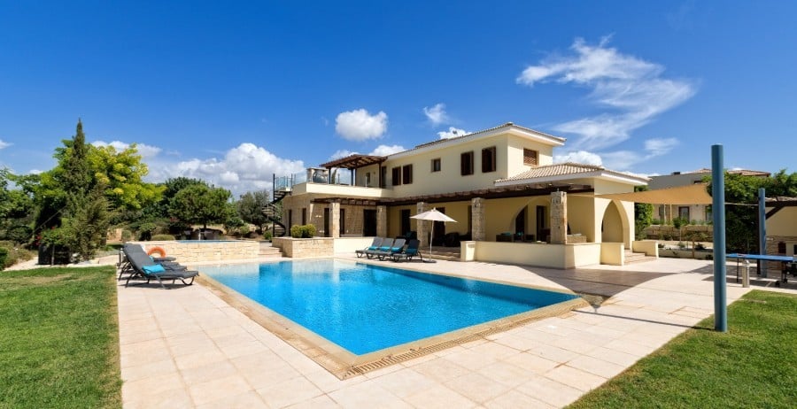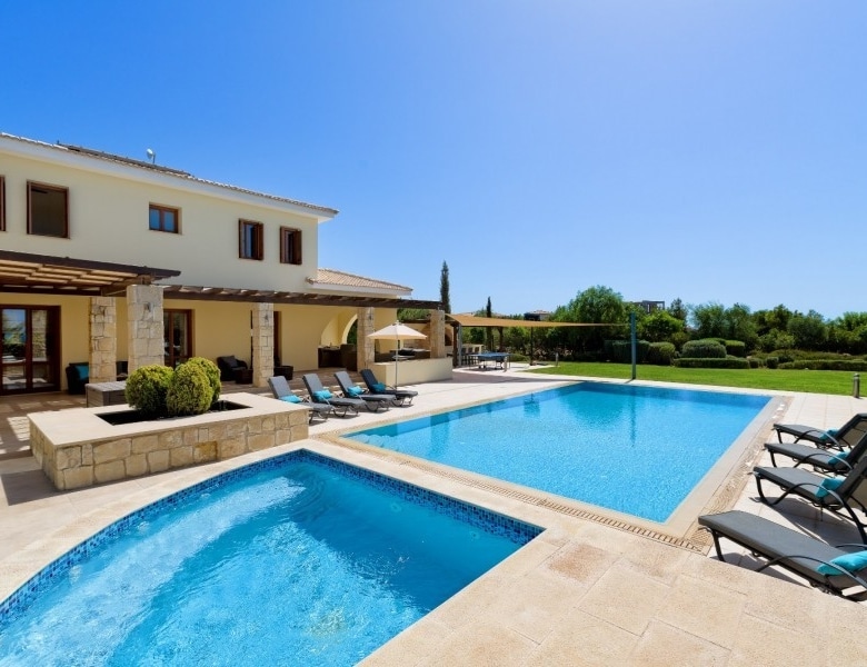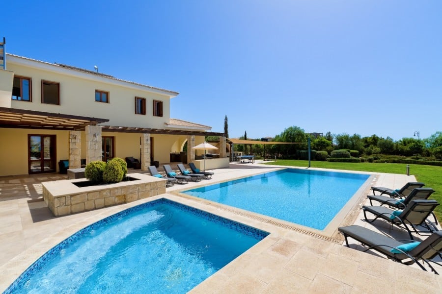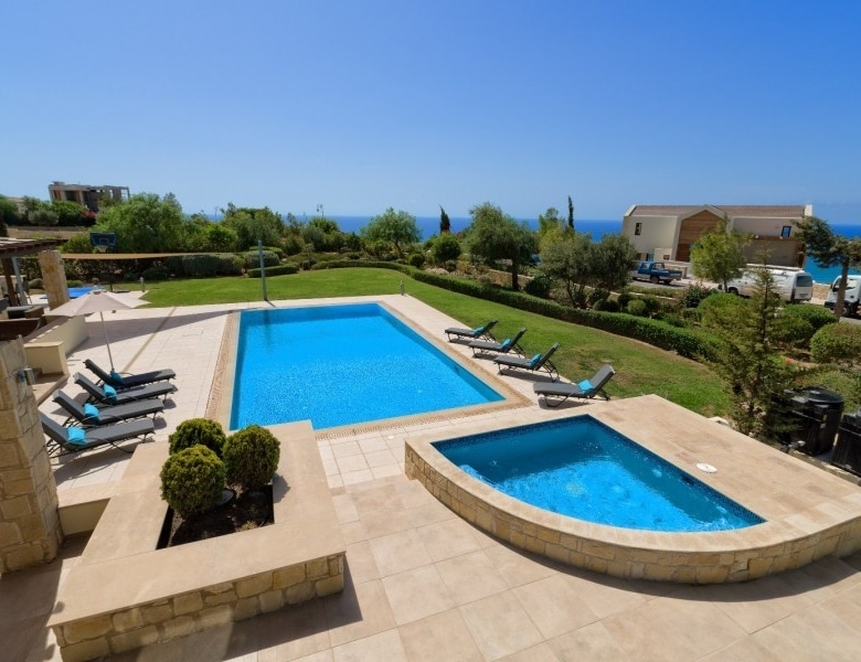 This spectacular property is situated on the exclusive eastern plateau of the resort, positioned on a prominent corner with some magnificent views. Entering the villa you are greeted with a stunning lounge area with a real wood burning fireplace and plenty of full glass doors letting in ample light. Adjacent to the living quarters is the magnificent kitchen, fully fitted with all the latest brand appliances and granite worktops with a lovely indoor dining area and a second living/tv room, again with plenty of full length glass doors overlooking the pool area. Up a few steps from the living area you will find a guest bedroom with fully fitted luxury wardrobes and a few more steps up to the 1st floor you will find a further guest bedroom and the stunning master suite with fully fitted luxury wardrobes and super luxury en-suite bathrooms. The first floor also has a magnificent spacious terrace with some of the most amazing views across the resort and out to sea. Down a few steps from the ground floor again you will find the fourth guest bedroom and again a few more steps down a very spacious fifth bedroom with again luxury fitted wardrobes to all and luxury en-suite. Stepping outside to the grounds is quite breath-taking, with mature trees and shrubs around, large grass area all surrounding the magnificent over flow swimming pool. There is also a separate Jacuzzi and fantastic purpose built BBQ area and plenty of shaded areas for al fresco dining and lounging. The villa is very well looked after by the current owners and is being sold in fantastic condition and fully furnished with all luxury fixtures and fittings.