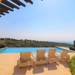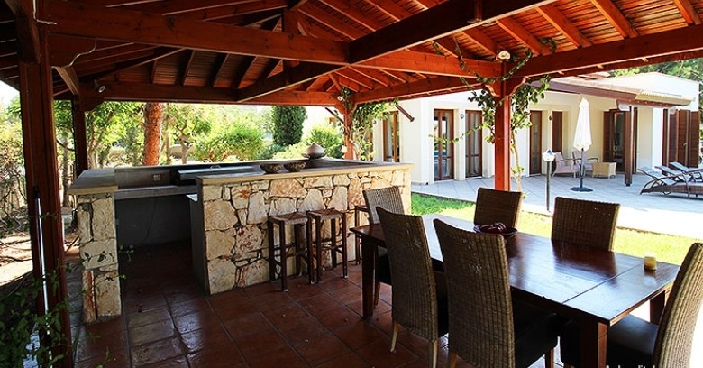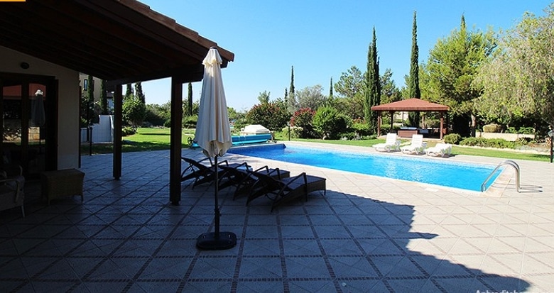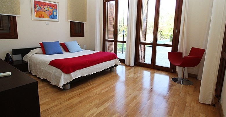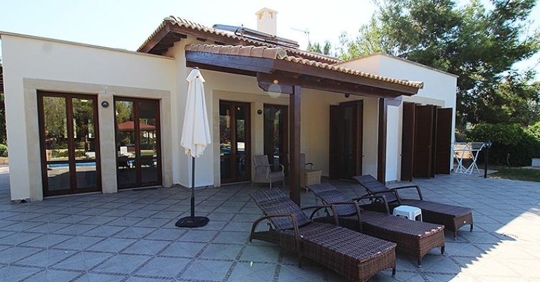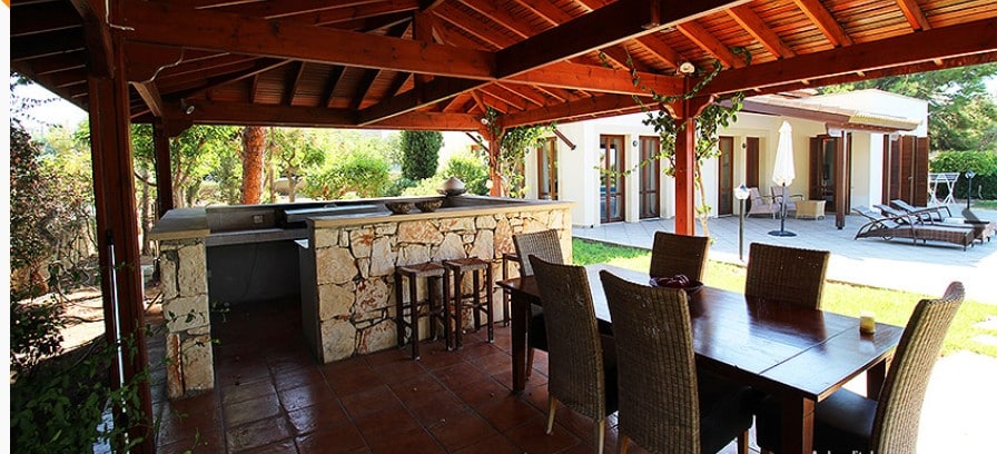 This stunning villa sits proudly on a corner plot of over 3,100 m2 of flat land, which gives the owner full utilisation to use all the land. Entering the villa, you are greeted with a spacious open planned living area with full glass solid wooden doors letting in ample light. There is a modern kitchen with granite worktops and all the latest brand appliances with an opened planned large dining area. The ground floor also incorporates the very spacious master bedroom with separate dressing area and private luxury en-suite bathroom with fitted wardrobes. A few steps up you will find the guest bedroom with again a luxury en-suite and fully fitted wardrobes. Down a few steps from the ground floor you will find the 3rd Bedroom with en-suite and fitted wardrobes.