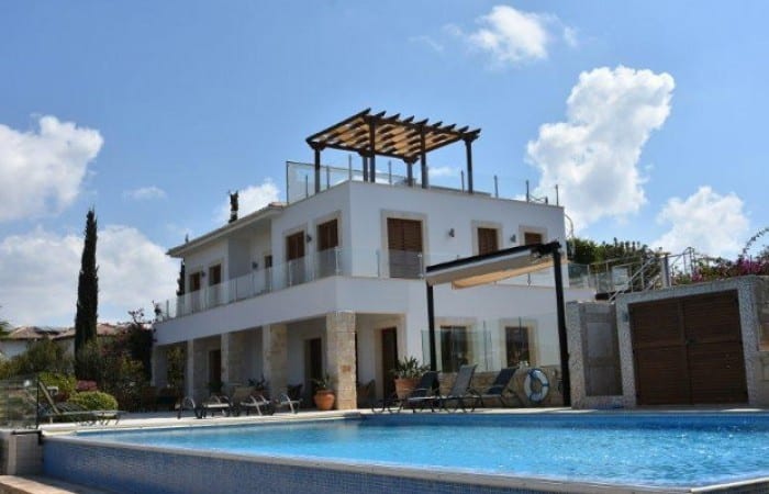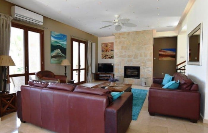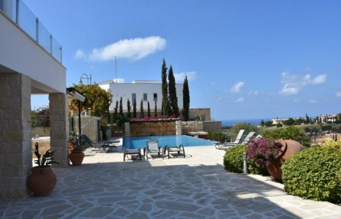 This is an exclusive villa at Aphrodite Hills with magnetic views. Modern design with high standard finishes throughout. It is located at a small neighborhood on a cul-de-sac street, on the front line of this famous resort, with uninterrupted sea views and golf views of the signature tee no 6. The property is built on 2,500m2 of land and it has six bedrooms and 5 bathrooms with a total living area of 400m2.