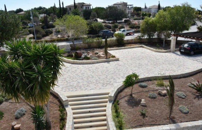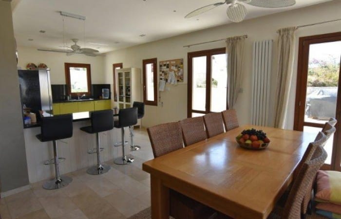 There is an open plan kitchen and a large living room with a fire place, under floor heating and A/Cs through out the house. It has large outdoor areas for sunbathing and entertainment with an infinity-shaped swimming pool, Jacuzzi, bbq and dinning area, large patios and a roof garden with magnificent sunset views.