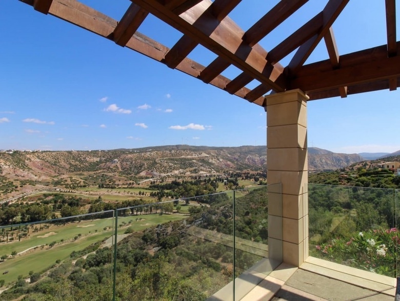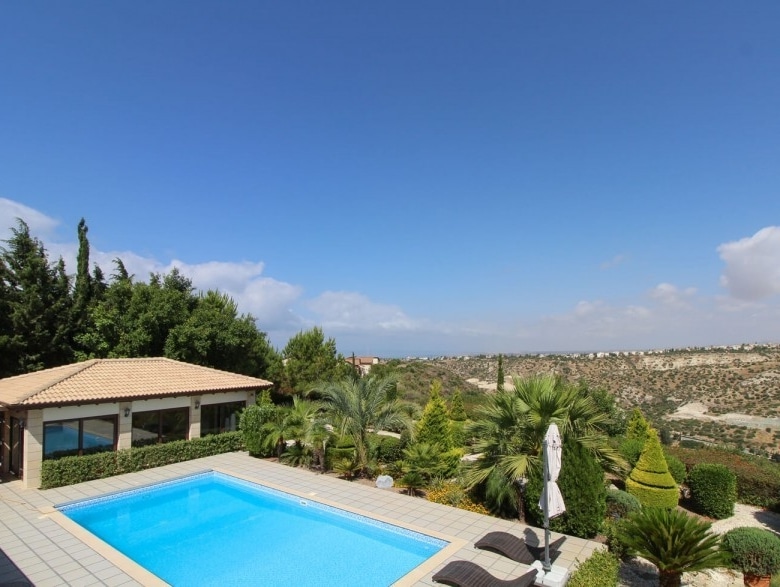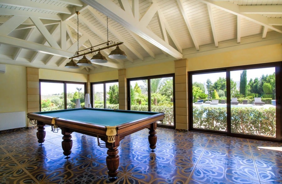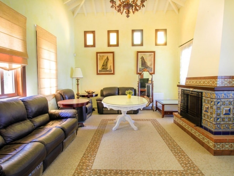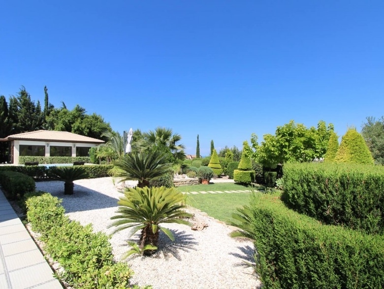 This fantastic villa is located on the Western Plateau, within walking distance to the village square facilities and offers complete privacy and peace of mind. Upon entering the villa, one will notice the harmonious colours that blend from the flooring and wall finishes to the very high-end Italian Design Kitchen cupboards. The lounge area offers a very high wooden beam ceiling and a large fireplace for those warm cosy evenings during the winter period. A second lounge can be found for everyday living with fantastic views over the large swimming pool and towards the magnificently designed gardens of the villa. The property offers 4 spacious bedrooms and 4 bathrooms with a fifth room that has been converted into an office but can be utilized as a smaller bedroom. The dining area can be located right next to the superbly designed kitchen which has been fitted with modern name brand appliances. Upon exiting the villa, one will notice a detached entertainment room to the left of the large swimming pool, offering a full size billiards table and plenty space for one to include a bar for those who want to socialise with the full experience of a sports bar. To the right of the swimming pool on the very edge of the garden, one may enjoy complete serenity with their own private jacuzzi, with amazing views over the golf course below and towards the Blue Mediterranean Sea. What makes this beautiful villa stand out, is its very spacious gardens, that have been designed to the very highest standards, offering unique colourful plants and shrubs with mature trees that have been trimmed and shaped to catch the eye. Truly one of the most beautiful gardens one can experience on the resort.