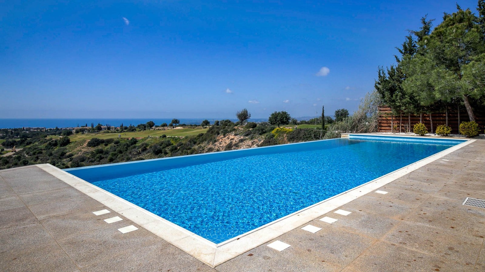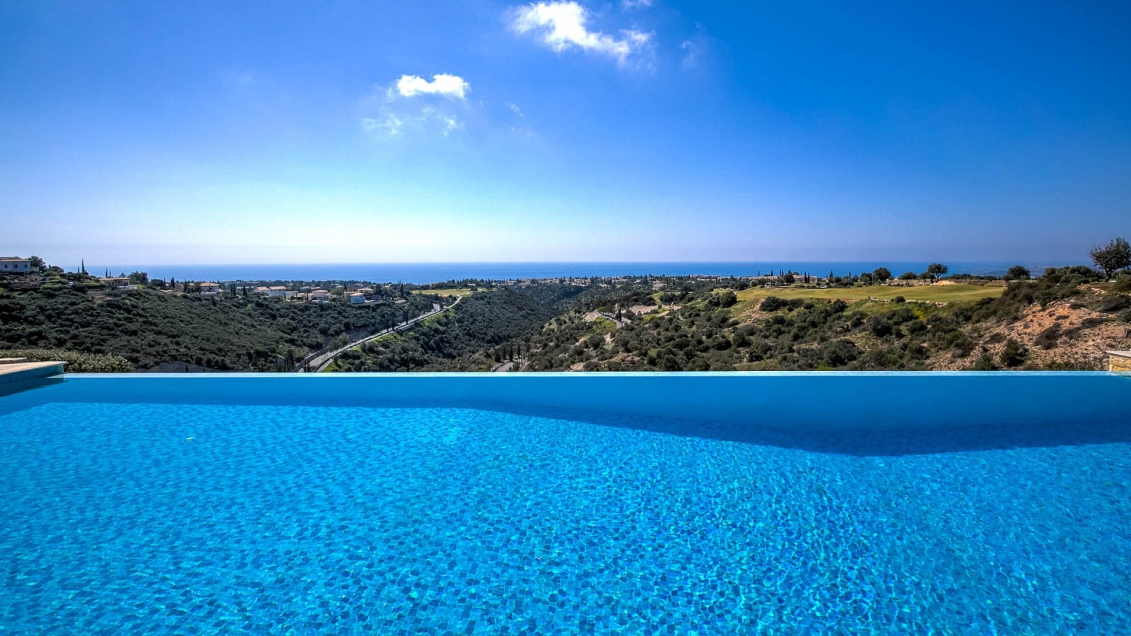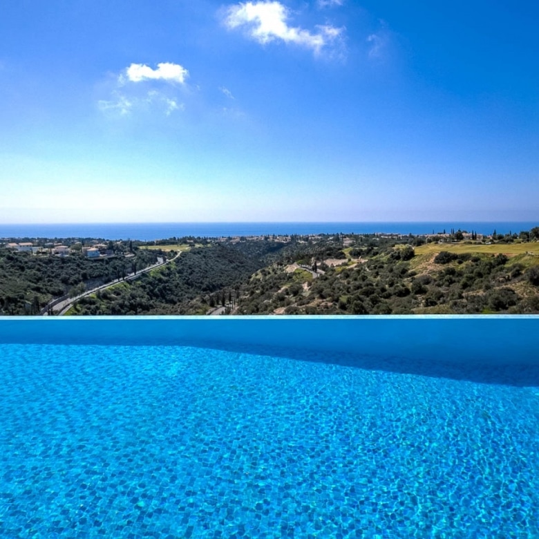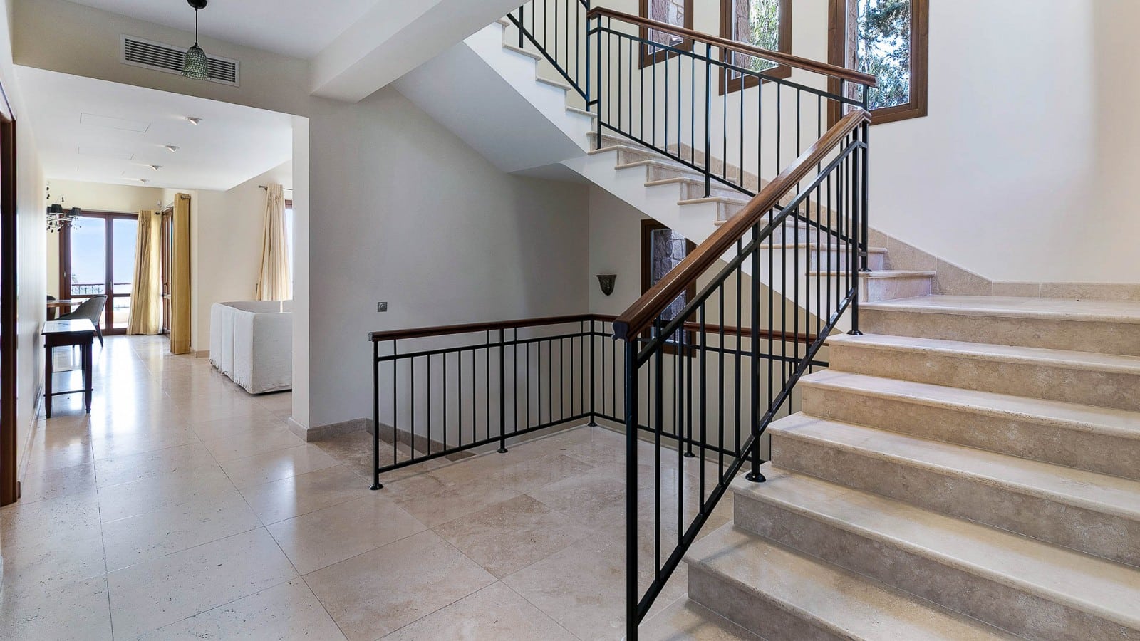 This beautiful villa is positioned on the western plateau at the very top of the Resort affording it spectacular views of the entire 5 Star resort and onto the Sea. It is located in a tranquil location and offers complete privacy. The very spacious entrance hall leads you into living area with its vaulted ceiling. The full-length double glazed, solid wood windows throughout the whole of the downstairs, take your eye immediately to its wow factor views from the terrace and private heated infinity pool across the ravine and golf course and on to the turquoise blue of the Mediterranean sea beyond. The perfectly positioned kitchen with its granite worktops and the ample open plan dining area also benefit from the superb views as you lead out onto the spacious covered terrace, with its BBQ area and then down to the landscaped gardens. There are five bedrooms in the property all with impressive ensuite bathrooms and the villa is arranged over three floors. The basement boasts a huge amount of storage room along with a bedroom, a utility room and a bathroom. The Villa benefits from Air conditioning and a hot water solar, pressurised system as well as underfloor heating and a working fireplace. The house was constructed in 2008.