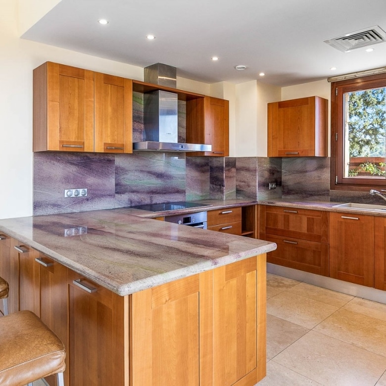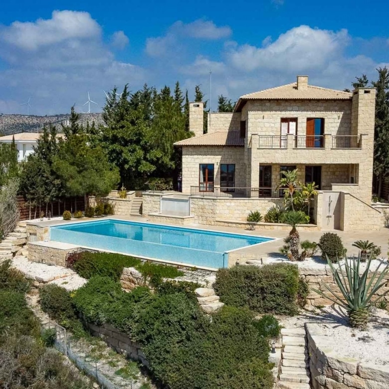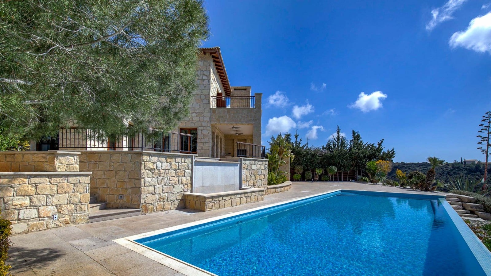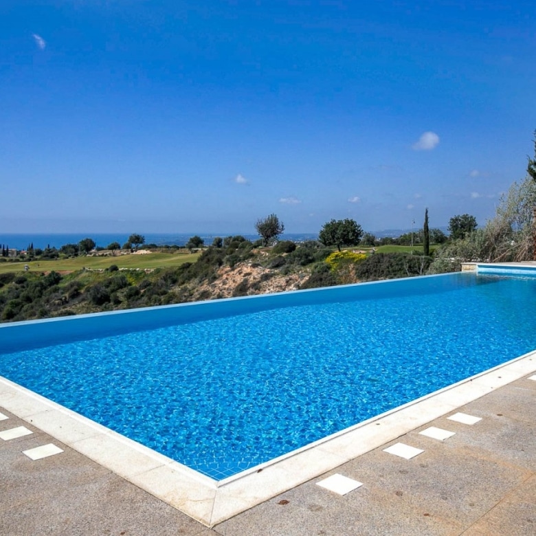 This beautiful villa is positioned on the western plateau at the very top of the Resort affording it spectacular views of the entire 5 Star resort and onto the Sea. It is located in a tranquil location and offers complete privacy. The very spacious entrance hall leads you into living area with its vaulted ceiling. The full-length double glazed, solid wood windows throughout the whole of the downstairs, take your eye immediately to its wow factor views from the terrace and private heated infinity pool across the ravine and golf course and on to the turquoise blue of the Mediterranean sea beyond. The perfectly positioned kitchen with its granite worktops and the ample open plan dining area also benefit from the superb views as you lead out onto the spacious covered terrace, with its BBQ area and then down to the landscaped gardens. There are five bedrooms in the property all with impressive ensuite bathrooms and the villa is arranged over three floors. The basement boasts a huge amount of storage room along with a bedroom, a utility room and a bathroom. The Villa benefits from Air conditioning and a hot water solar, pressurised system as well as underfloor heating and a working fireplace. The house was constructed in 2008.