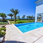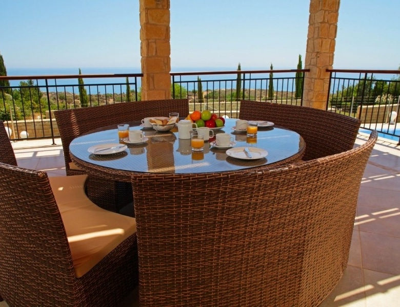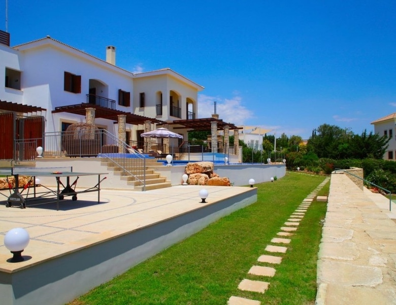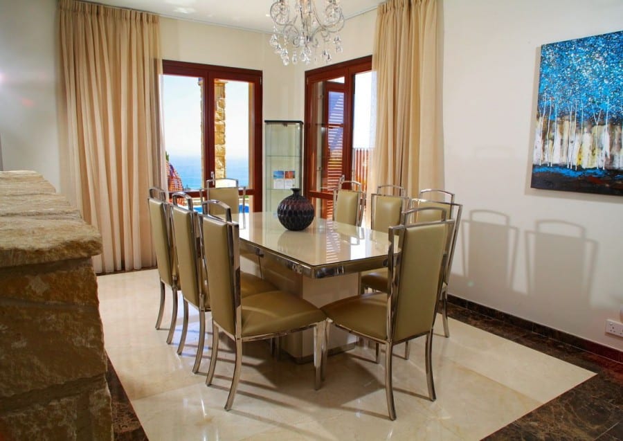 This magnificent, superbly located villa combines luxury and elegance and offers panoramic sea views from its private location on the peaceful Eastern plateau of Aphrodite Hills Resort. The property is lavishly furnished throughout and features fully air-conditioned luxury living areas and 5 spacious bedrooms. With a plethora of amenities, this large, detached property is ideal for Mediterranian living. The lounge, which features a stunning stone fireplace, sumptuous leather couches, and stylish chandeliers, is ideal for relaxing or entertaining, while the adjacent formal dining area is furnished with a smart dining table and chairs. This fabulous golf property features: 2 spaciouse basements (215 and 97 sq.m.), 7 bathrooms, big kitchen, fire place, unobstructed 180 degrees view on Aphrodite rock and Mediterranean sea, private tennis court with 2 additional shower rooms under the tennis court, sauna, underground parking for 6 cars, upper level parking for 5 cars, heated swimming pool, underfloor heating on ground floor and first floor.