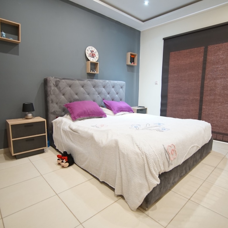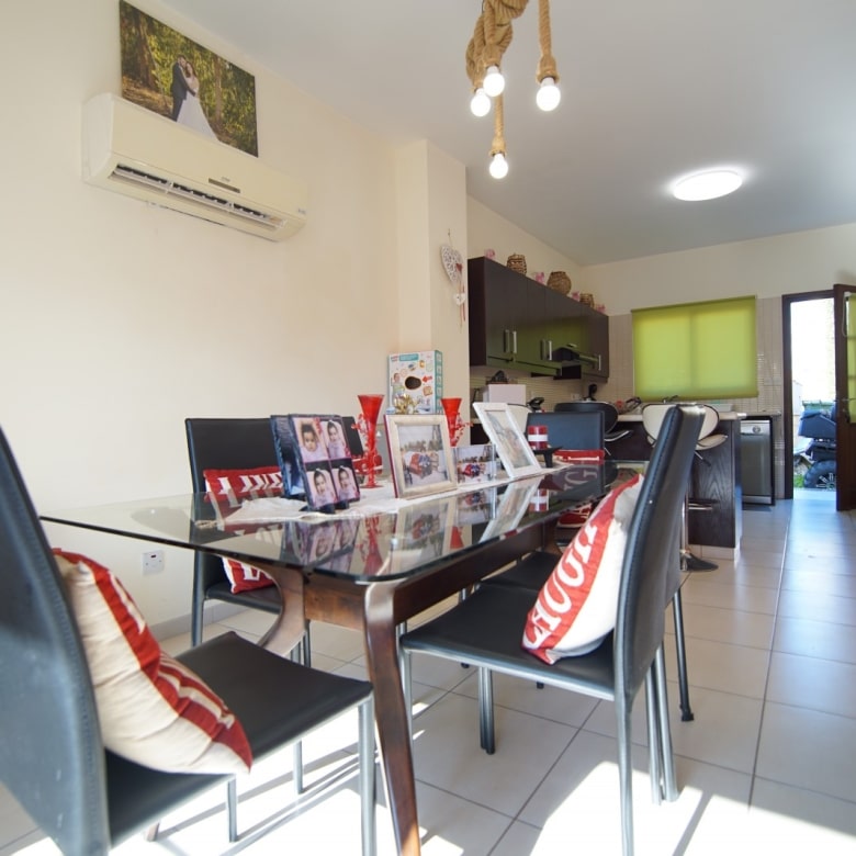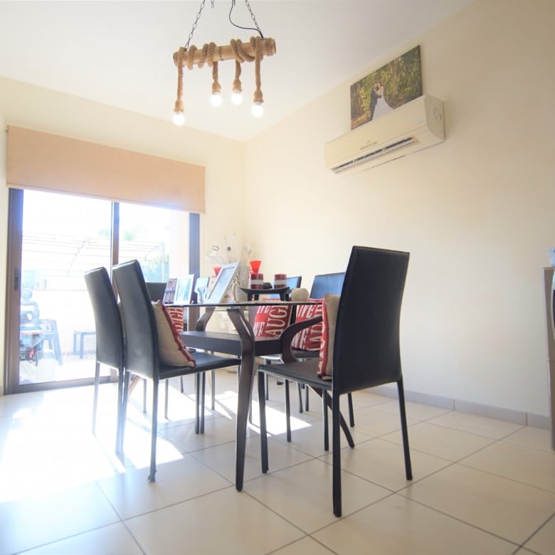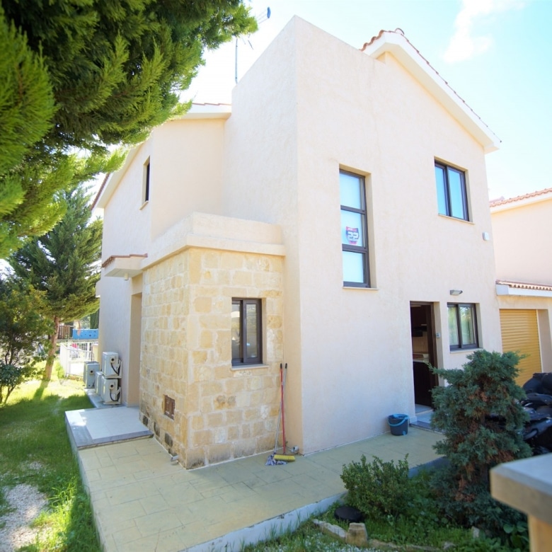 This cozy 3 bedroom, 2 bathroom villa is located in a quiet area in the Venus Rock Resort, also known as the Secret Valley. Entrance to the property through the front door leads directly into the spacious, bright, and airy dining and living area which has two sets of patio doors leading out to the terrace. There are air conditioners on the walls. Through the living room, you can enter the immaculate, spacious kitchen, equipped with modern appliances, large work surfaces, and storage cabinets. The patio door leads to the rear garden. There is also a guest toilet on this level. On the first floor are three good-sized bedrooms with floor-to-ceiling wardrobes, and air conditioning. Each of the bedrooms has its own balcony. The master bedroom has an en-suite bathroom with a shower, washbasin, and toilet, while the family bathroom serves the two guest bedrooms. The hotel has a lovely 8m x 4m tiled swimming pool and plenty of space for sunbathing and al fresco dining. This is a superb property in a very quiet location, ideal for a permanent or holiday home. Venus Rock is a popular residential area nestled in the hills above the Secret Valley golf course, a ten-minute drive from Paphos International Airport. The resort is close to the highway connecting Paphos and Limassol.