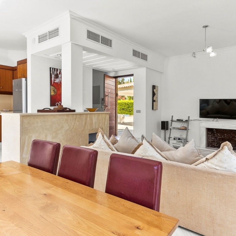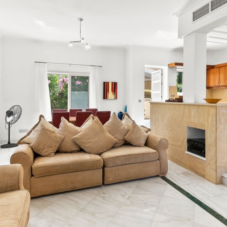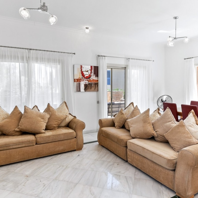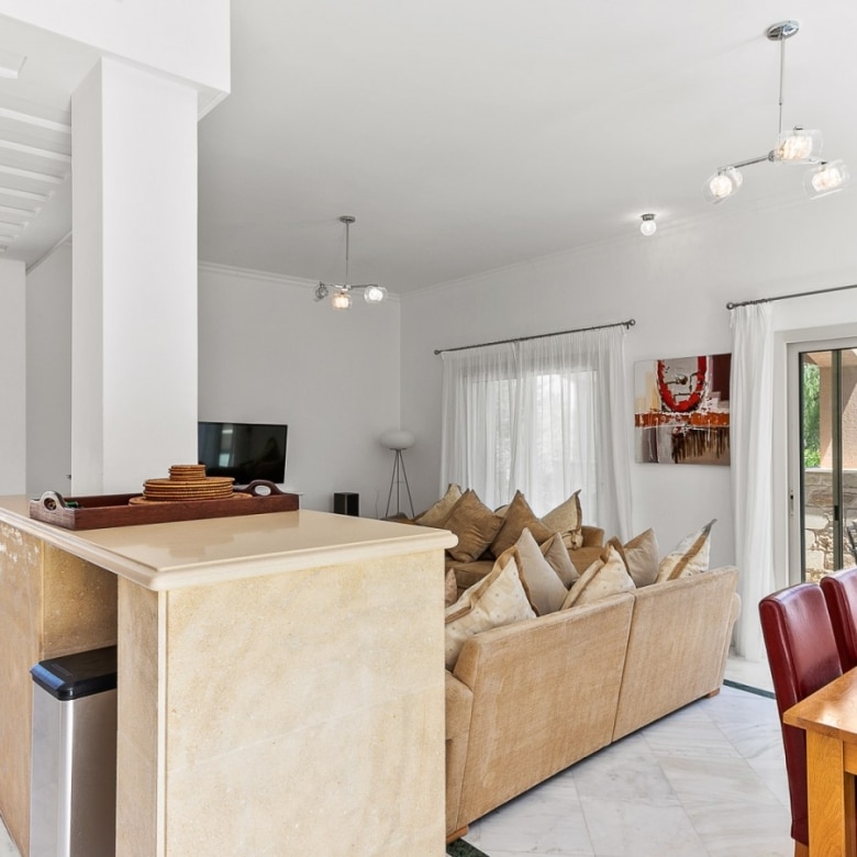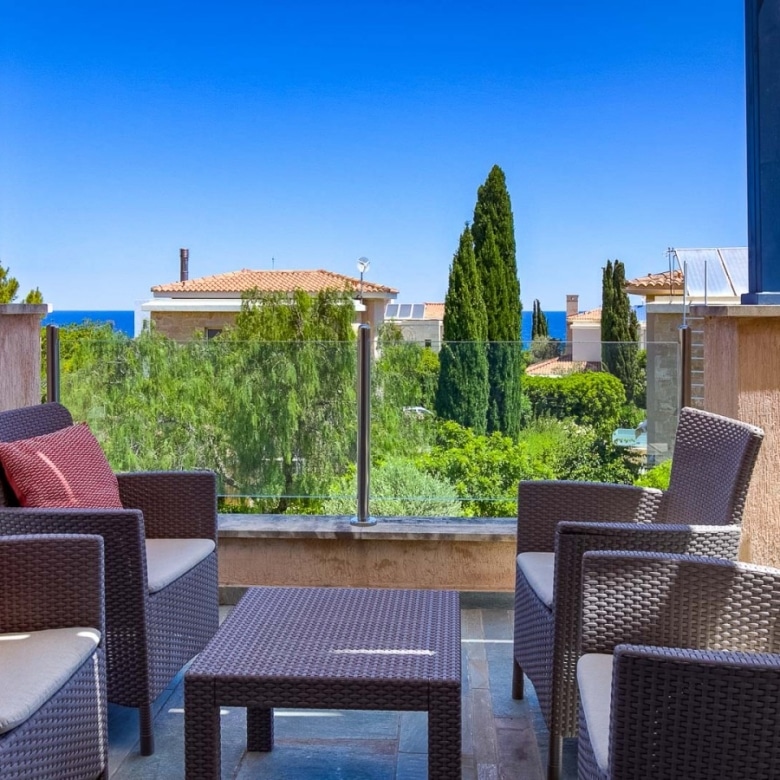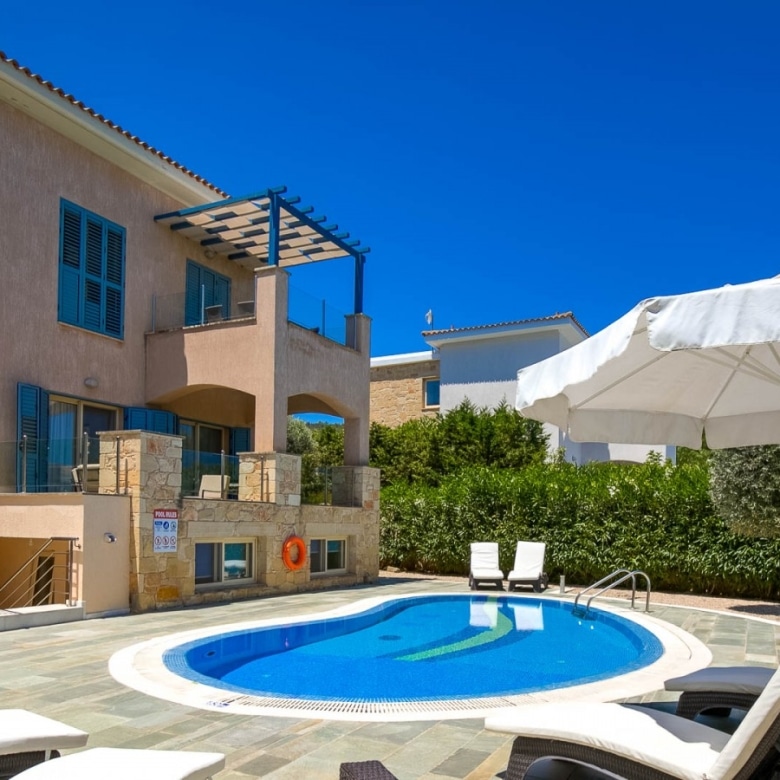 Step into a world of elegance as you enter the villa. Marble floors and stairs throughout the ground floor exude sophistication. A step down leads to the spacious living and dining room, both adorned with casement doors opening onto a raised terrace with glass panels, offering views of the pool and gardens. The living room features a working fireplace with a marble hearth and surround, creating a cozy ambiance. The beautifully fitted kitchen is equipped with all necessary appliances, catering to your culinary needs. Additionally, there is a guest cloakroom on this level for added convenience. Marble stairs ascend to two double bedrooms, each with luxurious en-suite facilities, wood strip floors, and fitted wardrobes. Both bedrooms offer breathtaking views of the sea and mountains. The main bedroom includes a private balcony with glass panels, perfect for al fresco dining or relaxing with a book. Bedroom 3, with its separate outside access, is ideal for a nanny or older children. This room also features an en-suite bathroom with a walk-in shower. The villa is fully air-conditioned and centrally heated, ensuring comfort in all seasons. The beautifully landscaped and secluded gardens provide a serene retreat. A path to the side of the house leads directly to the beach. The private heated kidney-shaped swimming pool, complemented by an outdoor freshwater shower and a built-in stone charcoal barbecue, is perfect for entertaining. The lounge areas and covered dining terrace, complete with a ceiling fan, offer ample space for relaxation and outdoor dining. Latchi, a charming village adjacent to Polis, is renowned for its fishing port and fresh seafood taverns. This idyllic location on the blue waters of the Mediterranean Sea provides a tranquil setting for your new home.