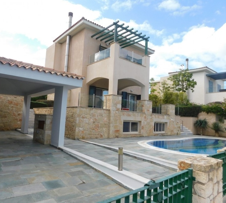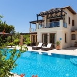 Perfectly situated at the water‘s edge, these are the pre-eminent seafront homes of Latchi. This premier gated development promises to surpass all others in terms of location, quality,, and prestige. This luxury villa has a spacious open-plan living/dining area with a gas fireplace system and a separate kitchen. Double patio doors lead to a large covered veranda that offers views to an impressive pool and to the mature garden. The kitchen gives access to the garden and to the BBQ area. On the upper floor,, there are two double bedrooms with an en-suite. Each bedroom has excellent views of the sea & mountains. The lower ground floor has a T.V room, a sauna, a storage room, a utility room, and a bedroom with an en-suite.