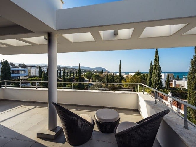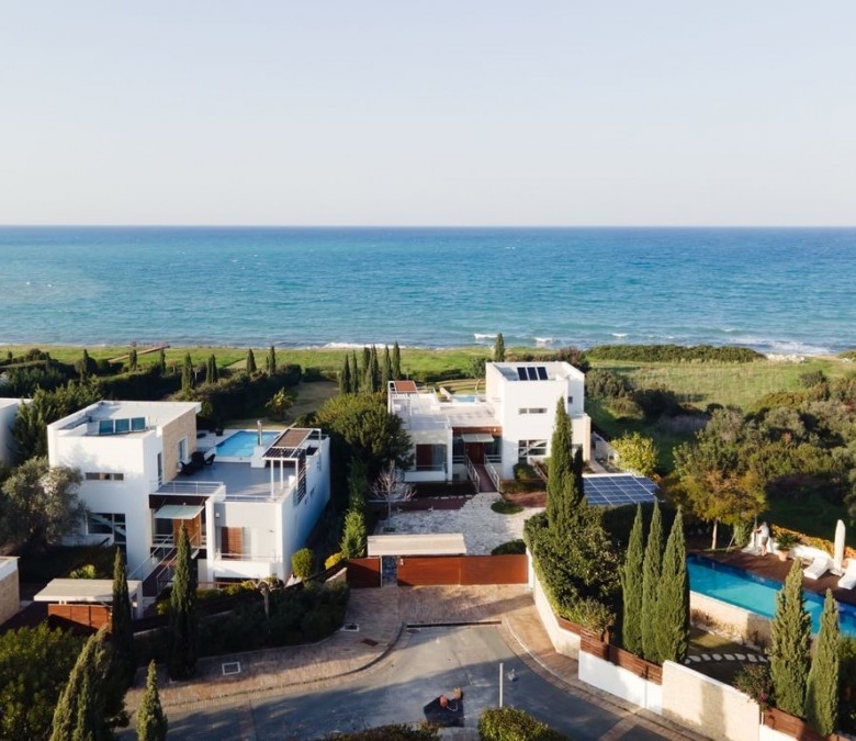 This luxury villa located right at the beach in a picturesque area of Polis Chrysochous with breath-taking views of mountains, sea and unforgettable sunsets is available for sale. It consists of 4 floors and equipped with private elevator for easy access around and marble staircase. Basement level offers the largest internal entrainment area currently being used as a cinema room. The space still retains excellent natural light from its twin set of double doors complete with a private terrace that leads up to the garden. The lowest level is complete with several storage rooms, utility room, bathroom with shower. Ground floor consists of the open plan modern kitchen, living room with a fireplace, dining area and large guest en-suite bedroom. The glass door from the kitchen leads to an outdoor BBQ area. The living room boasts stunning views of the generous 830m2 plot with sea views. First floor complete with a sitting area, main guest bedroom with shower room and impressive master bedroom including en-suite bathroom and separate shower. Both bedrooms have access to a large terrace, perfect for morning coffee and spectacular views of the coastline. Roof garden of 68m2 has to be one of the main selling points of this property, completed with Jacuzzi. The garden is full of mature trees and bushes. Tiled lap pool with swim-up bar, outdoor shower, plenty of sun loungers all surrounded by softwood panels for extra luxury. The Villa needs to be viewed to fully experience its modern design and natural surroundings.