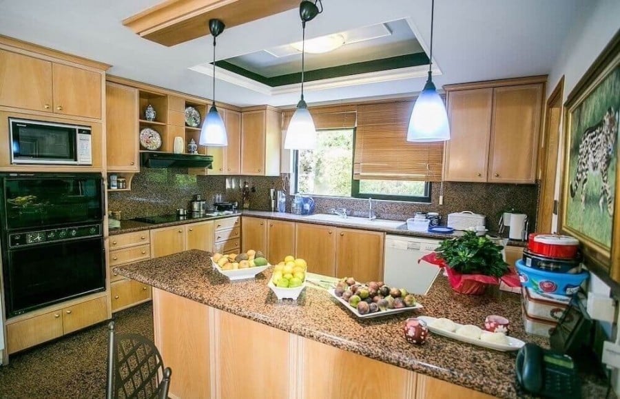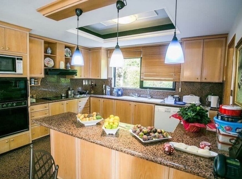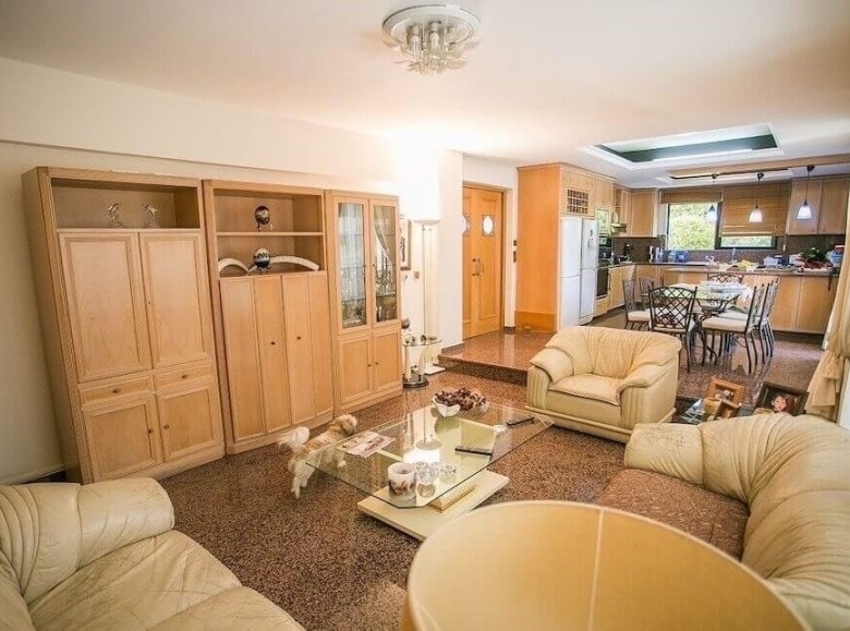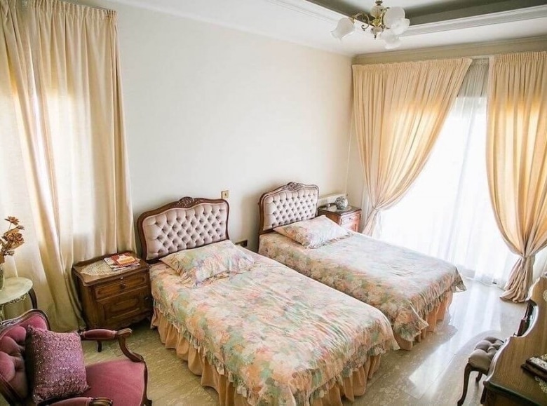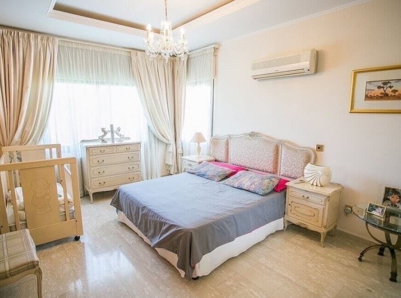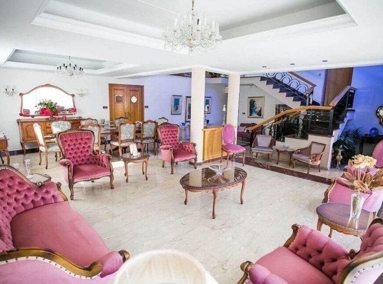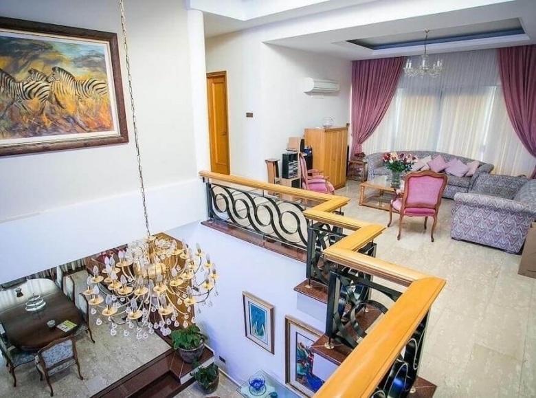 This beautiful luxurious five bedroom four bathroom property is located in the heart of Paphos Town close to all amenities, cafes, bars restaurants and supermarkets. The villa is furnished in top-of-the range marble with designer finishings. The kitchen and bathroom work tops are covered with superior quality granite and an Italian designed fully fitted kitchen. The main entrance leads to the lobby area and to a spacious open plan living/dining area. The swing doors lead to the large kitchen/dining and sitting area. From the sitting area, doors lead out to the veranda and garden, with purpose-built BBQ facilities. From the lobby and the kitchen you can access the ground floor bedroom and a family shower room. Steps Down lead to the Garage and a door that gives you access to the gardens and car parking spaces for a further 3 cars. On the mezzanine level there is a twin bedroom with walk in wardrobes, en-suite bathroom and a balcony. On the first floor there is another lounge area with access to a balcony. To the right is a a further double bedroom with fitted wardrobes, a large storeroom and a family bathroom with his & hers wash hand basins. To the left of the lounge area there is a kitchenette which is currently being used as an office. Adjacent to that, there is another twin room with fitted wardrobes, plus the master bedroom with walk in wardrobes a large bathroom and balcony. Access to the attic via a bifold ladder is just before the bathroom. There is central heating and air conditioning. White goods are included in the sale price and furniture is available by negotiation.