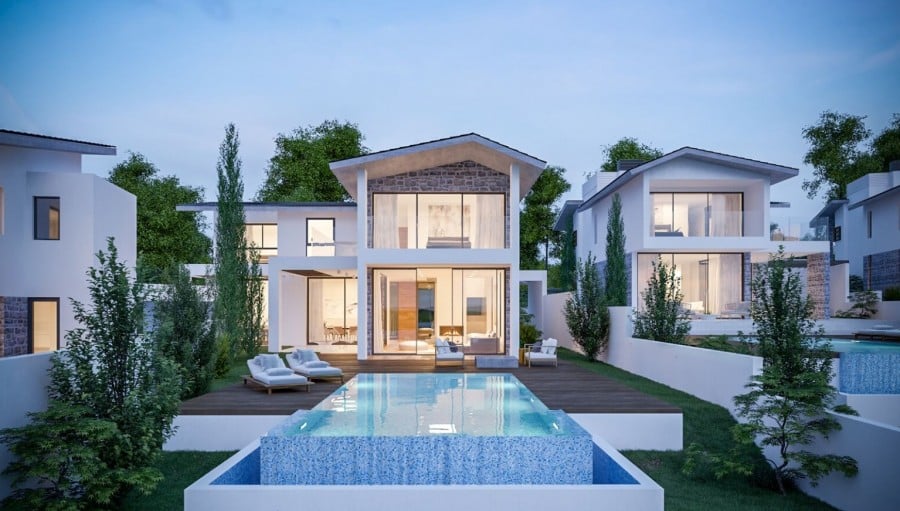 The design blends modern architecture with traditional Cypriot style and character, incorporating local stone, terracotta roof tiles and glass. These traditional materials have been combined with an ultra-modern edge, resulting in enduring designs that fully exploit their spectacular setting.