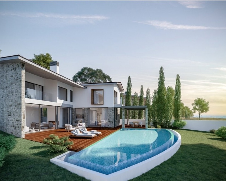 The design blends modern architecture with traditional Cypriot style and character, incorporating local stone, terracotta roof tiles and glass. These traditional materials have been combined with an ultra-modern edge, resulting in enduring designs that fully exploit their spectacular setting.