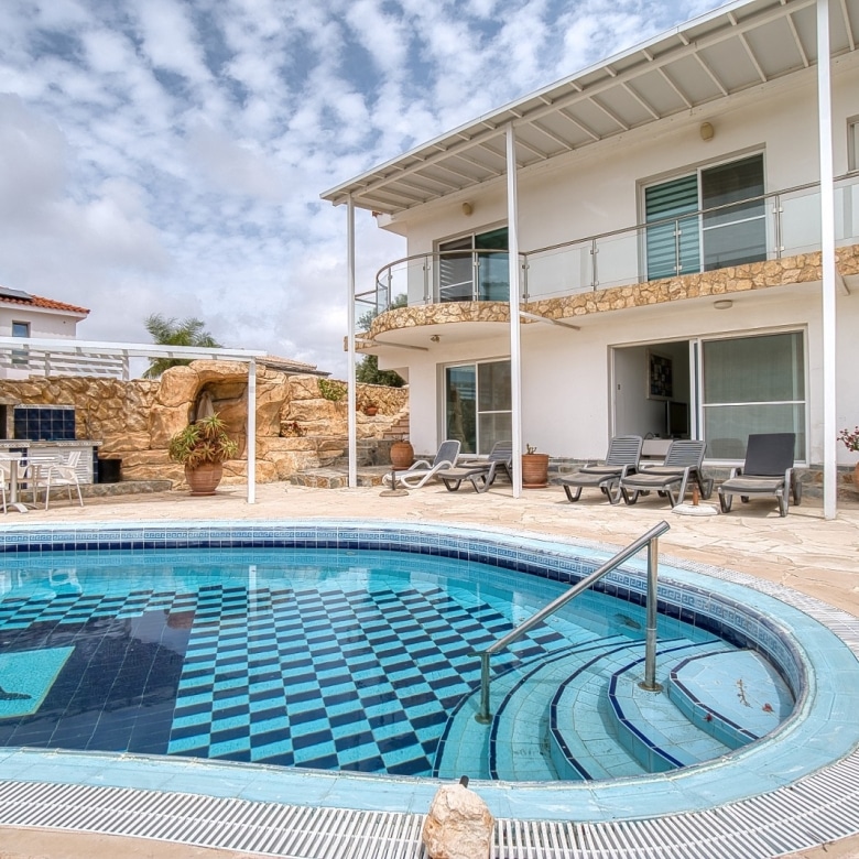 This is an exceptionally spacious and most luxurious property, with quality finishes and materials of the highest standards. The grounds around the property are all beautifully established and in fabulous condition. Around the Pool are wonderful entertainment areas, including BBQ, two waterfalls and many more.Enjoy the breathtaking views -overlooking the proposed Marina – from almost every angle of this cleverly designed villa. With extra’s altogether too numerous to mention, and the added bonus of the Title Deeds being issued, this property must be viewed to be appreciated.