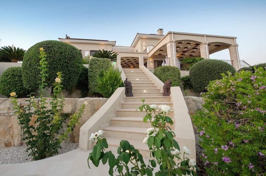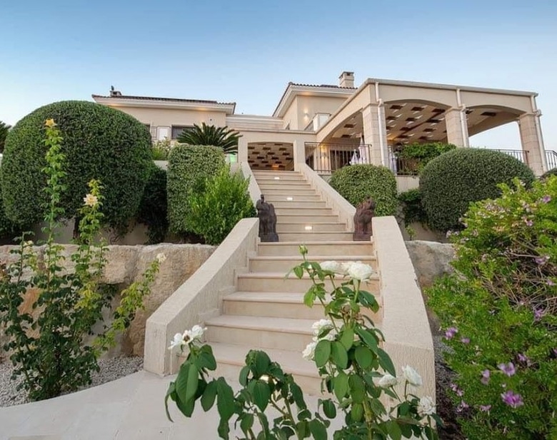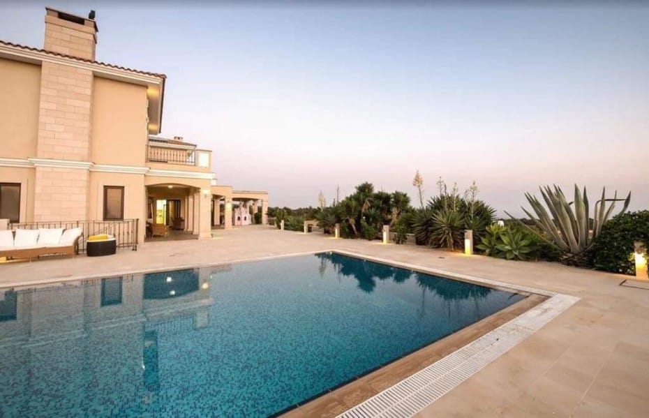 This magnificent 6 bedroom villa is situated on top of a hill in Peyia village, offering panoramic sea views. The luxury villa provides complete privacy and features a swimming pool surrounded by beautiful gardens. The interior includes an open plan lounge dining drawing room area, a separate kitchen, playroom, and 6 double bedrooms with en suite bathrooms. There are also large covered and uncovered verandas and balconies with stunning panoramic views of the sea. Outside amenities comprise a private pool, well-established gardens, a BBQ area, and entertainment/dining spaces.
