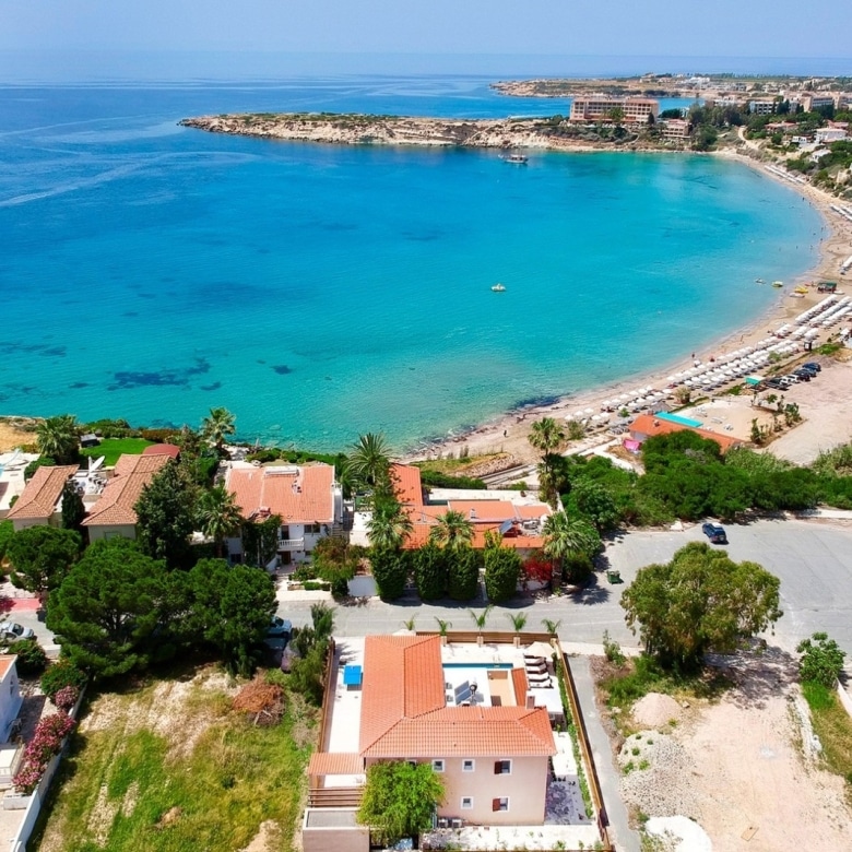 The wild and wonderful Akamas Peninsula and National Park is to the east of you and the charming harbour in Kato Paphos and the Old Town of Paphos is to the west of you.