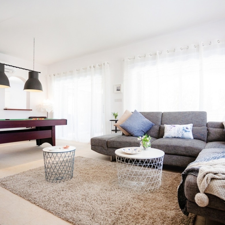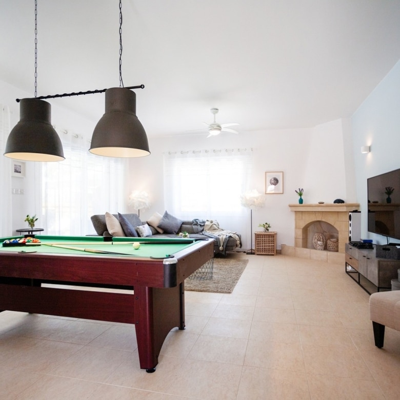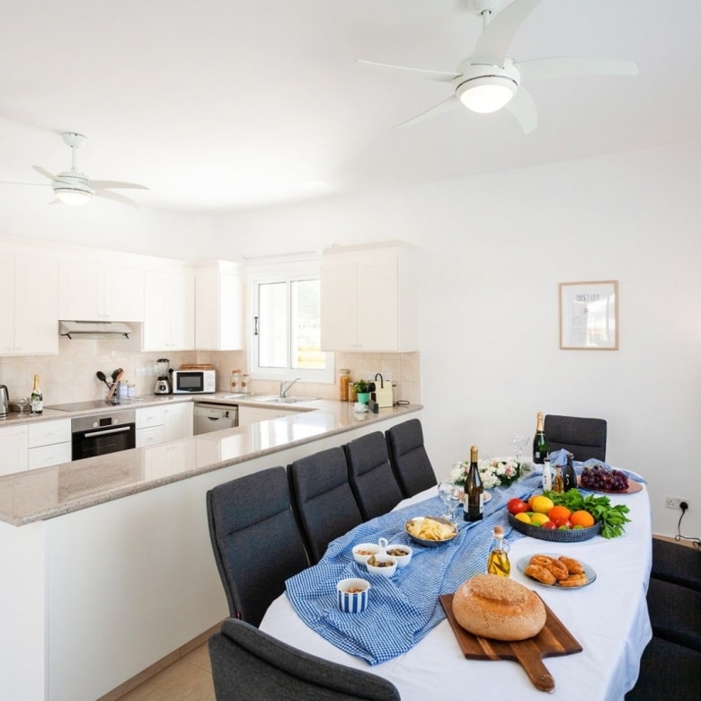 To make the most of that gorgeous Cypriot sun, the pool is at the front of the property but with plenty of privacy with fencing and greenery. The beautiful private pool has Roman steps and can be heated if you are joining us during the cooler months (heating, optional extra), also luxury sun loungers, sun umbrellas, optional hot tub, covered al fresco dining area, bbq and ping pong table