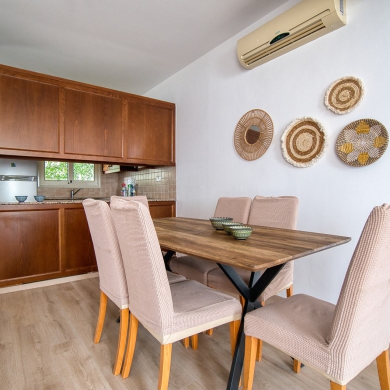 The 3-bedroom villa offers a private outdoor pool and a well maintained garden. Relax and unwind on the sun loungers or enjoy a glass of wine on the terrace. Unique space will make your stay unforgettable. As you enter you will find yourself in a modernly furnished living area, which glass patio doors will lead you to terrace where al fresco dining can be enjoyed whilst admiring the mesmerizing views of the garden and pool. Apart of the fully equipped kitchen and dining area, the guest toilet is located on this floor. When reaching the first floor via the stairs there are 3 bedrooms. A master bedroom with king size bed, en-suite. Completing the bedrooms on this floor are a further 1 double and 1 twin bedrooms. The outside area can be accessed from the ground floor where you will find the spacious front garden area , outside table and chairs and the private swimming pool.