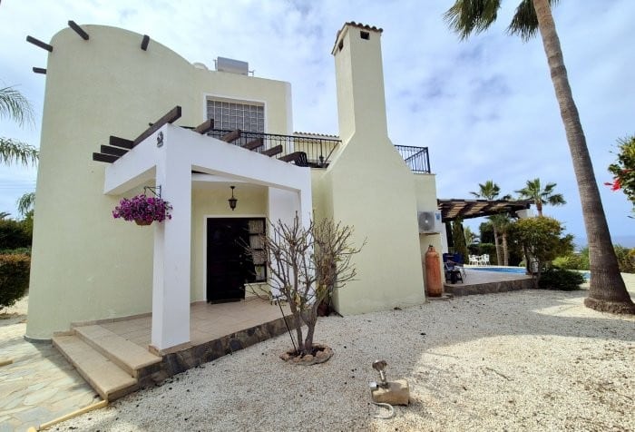 Discover unparalleled elegance with this stunning 3-bedroom, 2-storey villa for sale in the exclusive Sea Caves area of Paphos. Perched on an elevated double plot of 1000m², this electronically gated turnkey property offers secured, breathtaking sea views and mesmerizing sunsets. Step into an open-floor-plan design where an oversized kitchen with granite counter tops with premium finishes flows seamlessly into the living and dining areas, complete with electric radiators for cozy evenings. Downstairs, a generous en-suite bedroom provides convenience and privacy, while upstairs, two additional bedrooms bask in natural light, with a sitting room which has clear views to the sea and a direct access to a very large patio area. Ceiling fans throughout ensure year-round comfort. Outside, an extended and oversized private pool and expansive patio area beckon for relaxation, surrounded by mature, landscaped gardens that enhance the serene, private setting. With a long private driveway this gated villa combines privacy with luxury. In addition to a spacious two-car garage, the property features up to eight off-road parking spaces.