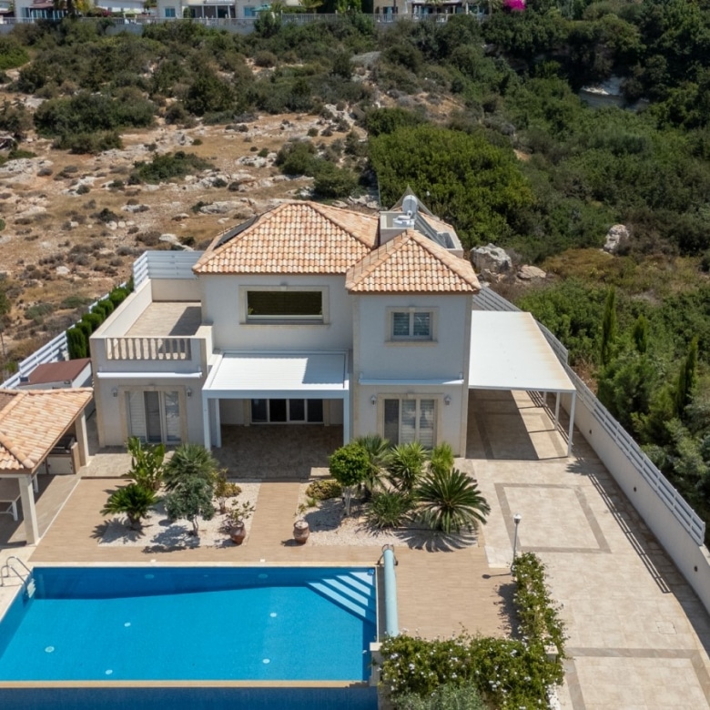 Welcome to an exquisite retreat in the prestigious Sea Caves area, where luxury and nature blend seamlessly. This stunning 3-bedroom villa, with the option for a fourth, redefines sophisticated living. Situated on a sprawling 970 m² plot adjacent to a protected green zone, this home offers tranquility and breathtaking unobstructed views of the sea, just 800 meters from the coastline.