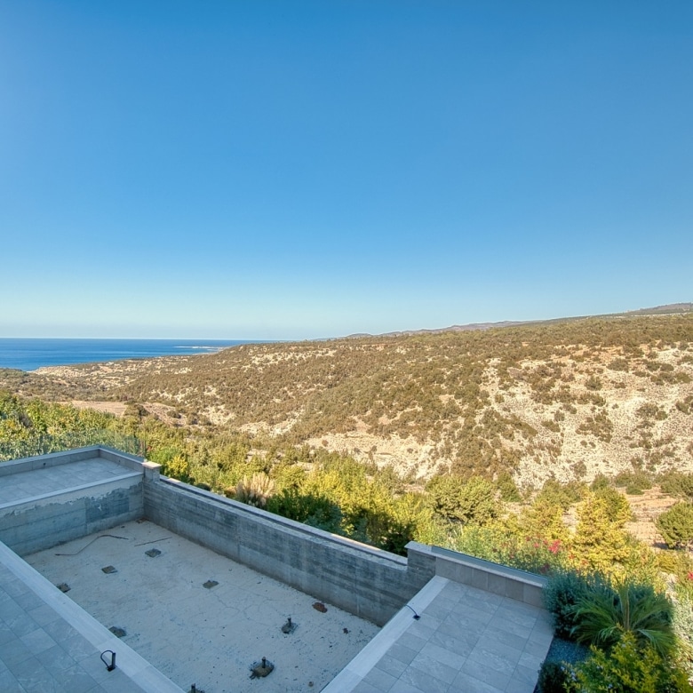 Beautiful six bedroom detached villa situated high up on a hilltop within the area of the gorgeous Akamas peninsula in the Paphos district. Breathtaking panoramic views, privacy and surrounded by nature. There is a photovoltaic system in place and for the private swimming pool, electric gates and double car port. There is an outdoor kitchenette area with barbeque facilities. Marble staircase and granite worktops.