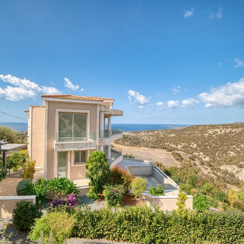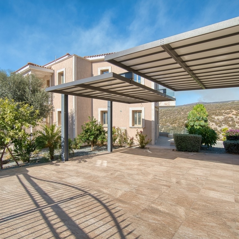 Beautiful five-bedroom detached villa situated high up on a hilltop within the area of the gorgeous Akamas peninsula in the Paphos district. Breathtaking panoramic views, privacy, and surrounded by nature. There is a photovoltaic system in place, and for the private swimming pool, electric gates, and a double car port. There is an outdoor kitchenette area with barbecue facilities. Fly screens on all the double-glazed windows. Marble staircase and granite worktops. There is also an amazing roof garden that allows you to enjoy and entertain in front of the most amazing views.