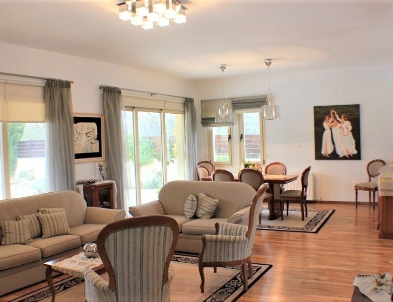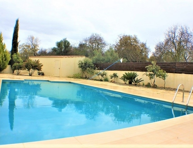 For sale large private villa in Polemi village of Paphos in a private beautiful green area at the outskirts of the village. A huge swimming pool in a big plot of land of 1,000 sqm. (Option to extend the land area at extra cost). All around this property for sale in Polemi are mature trees giving an extra unique feeling.