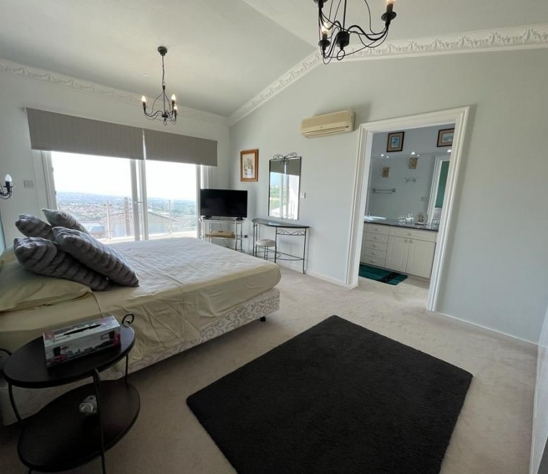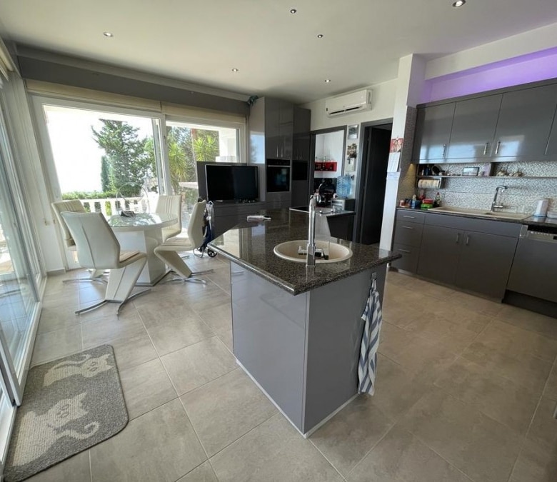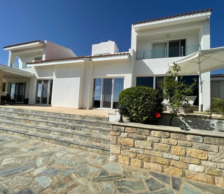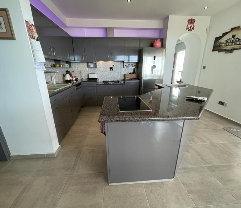 This Spacious Three Bedroom Three Bathroom Villa is located in a quiet residential area of Tala, boasts the most Beautiful Sea and Mountains Views of Paphos! A minimarket and Tala Village square with many restaurants, tavernas, bars are within easy reach. Approximately a 15 minutes’ drive to the sandy Beaches of Coral Bay! The property can be accessed via Electric Gates and sits on a large plot of 900 sq. m., with ample space for a 10×5 meter Swimming pool. The property is surrounded by beautiful mature Landscaped Gardens and has a Private Driveway for four cars and also has a double garage. On the ground floor, there is an extremely bright and spacious Open Plan Living/Dining/Kitchen Area with sliding patio doors leading out to the Large Covered Veranda and outdoor jacuzzi. The Kitchen is well equipped with ample wall and base units and integrated electrical appliances. On this level, there is also a Guest Cloakroom and a double bedroom with fitted wardrobes and en-suite bathroom. On the first floor there are a further two Double Bedrooms with fitted wardrobes and a Family Bathroom. The Master Bedroom has an En-Suite bathroom, the second bedroom has the use of the family bathroom. There is also a balcony off the master bedroom, offering Beautiful Mountain Views. This custom designed property has Gas Central Heating, Air Conditioning, fly screens and an alarm system throughout. Externally, there is a Kitchen and BBQ Area. The Property is being sold with White Goods and Furniture is available by Negotiation. Certainly, a stunning property and viewing is highly recommended! Title Deeds Available.