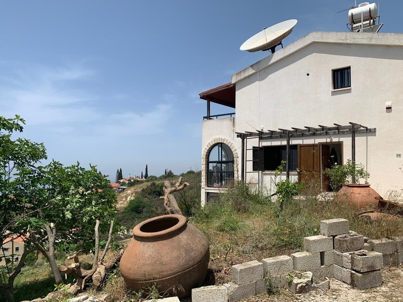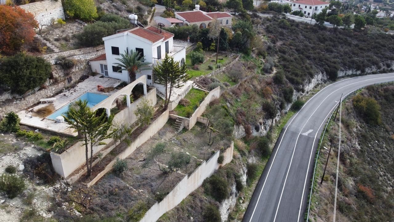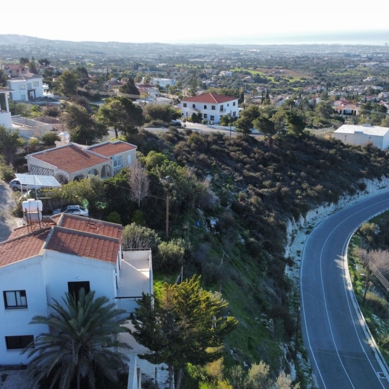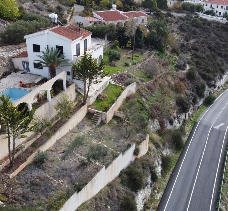 This Mediterranean style two storey freehold villa is available for sale. Located in the prime location on the mountain hills of Melissovounos, Tala village, on the outskirts of Paphos. The property is approximately 450m above sea level and approximately 6km north from the coastline with stunning breathtaking and unobstructed sea views, city and countryside and mountain views with quick and easy access to amenities and services. The villa is erected within a 1620sqm land under residential building zone with 30% building density. The south border frontage is adjacent to public road and the west border is adjacent to public green area.
