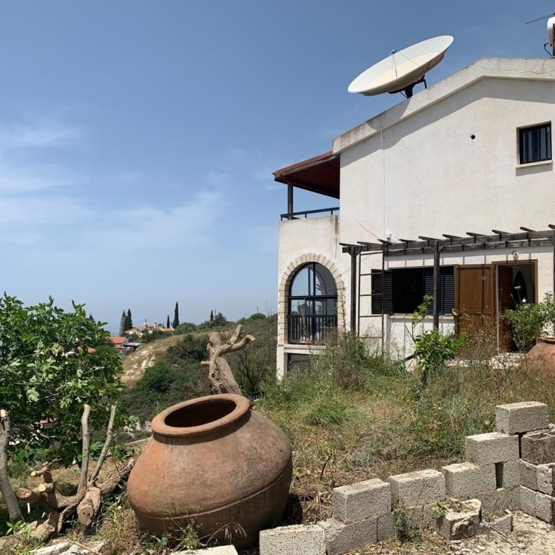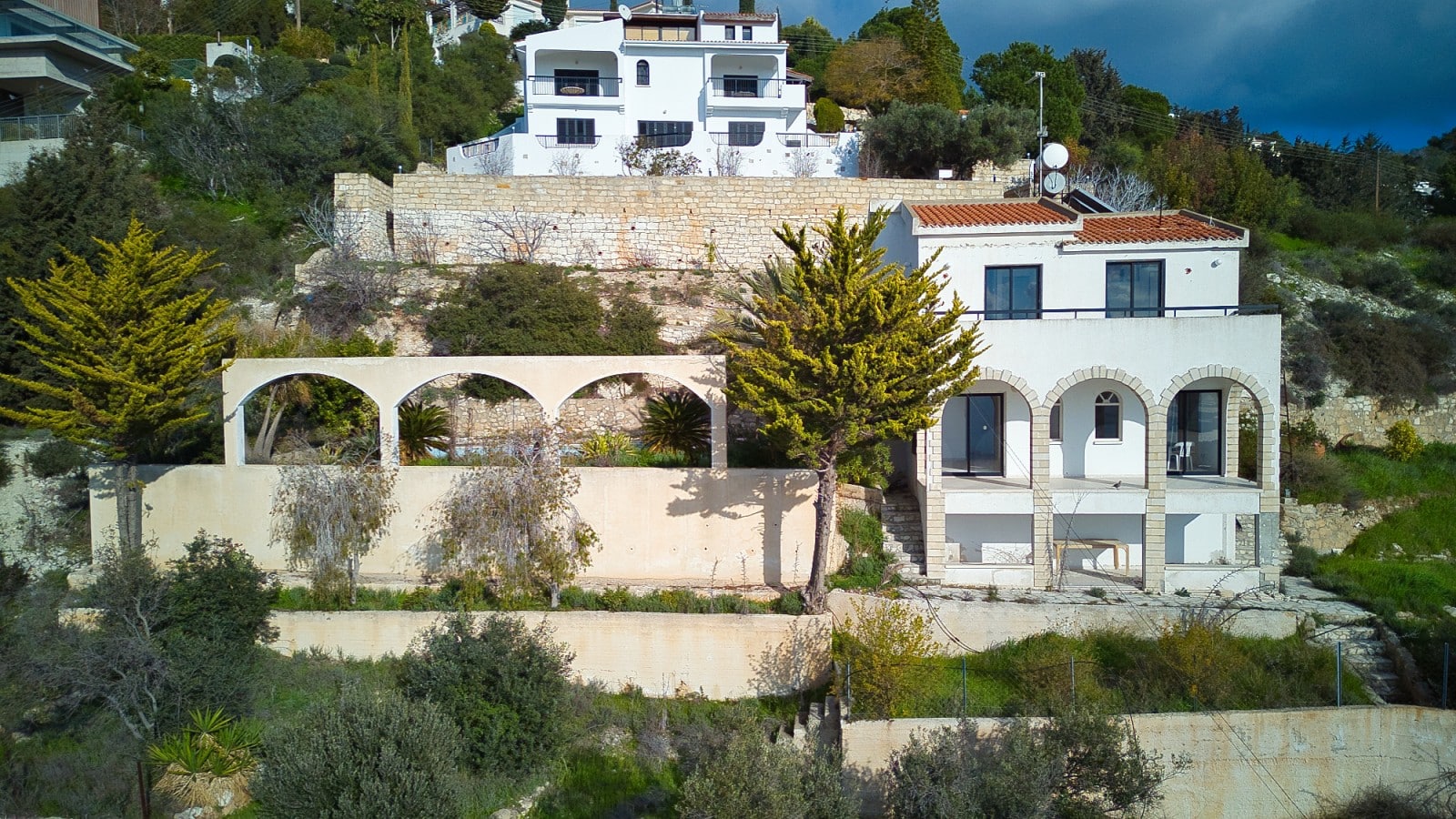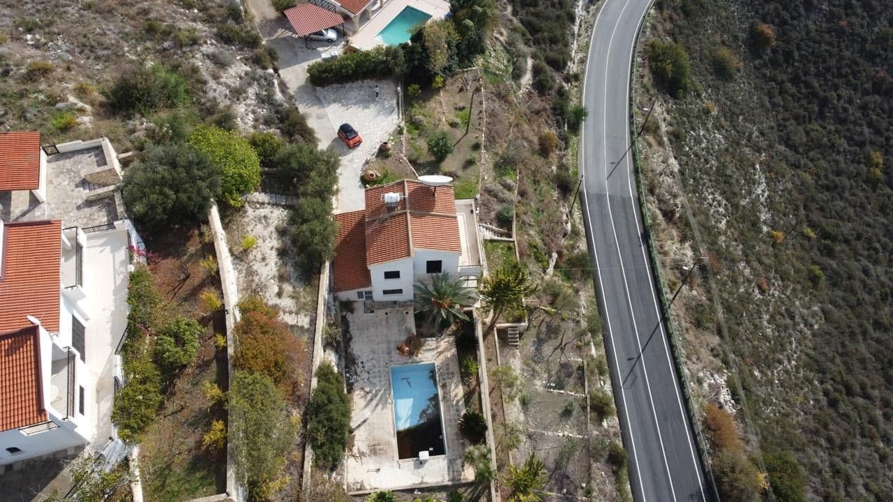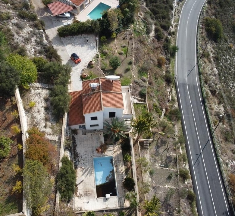This Mediterranean style two storey freehold villa is available for sale. Located in the prime location on the mountain hills of Melissovounos, Tala village, on the outskirts of Paphos. The property is approximately 450m above sea level and approximately 6km north from the coastline with stunning breathtaking and unobstructed sea views, city and countryside and mountain views with quick and easy access to amenities and services. The villa is erected within a 1620sqm land under residential building zone with 30% building density. The south border frontage is adjacent to public road and the west border is adjacent to public green area.