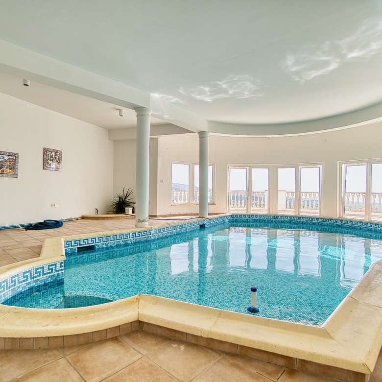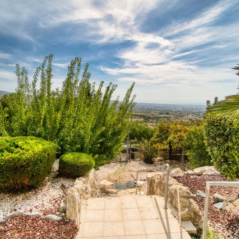 For Sale 5 Bedroom Luxury and custom built House in Tala (Lofos). It is beautifully designed with high standards and furnished with high quality unique furniture! All bedrooms are ensuite, underfloor central heating, air condition 2 fully equipped kitchens with high standards, indoor heated swimming pool, barbecue area and low maintenance garden! The property is also fully equipped with Solar panels which power the house and heated pool meaning very cheap electricity bills.