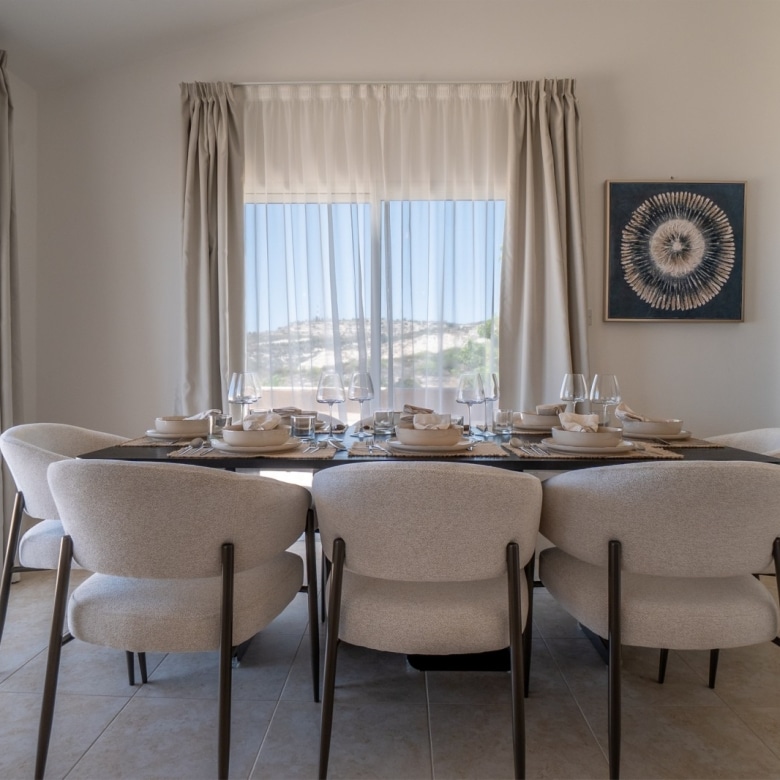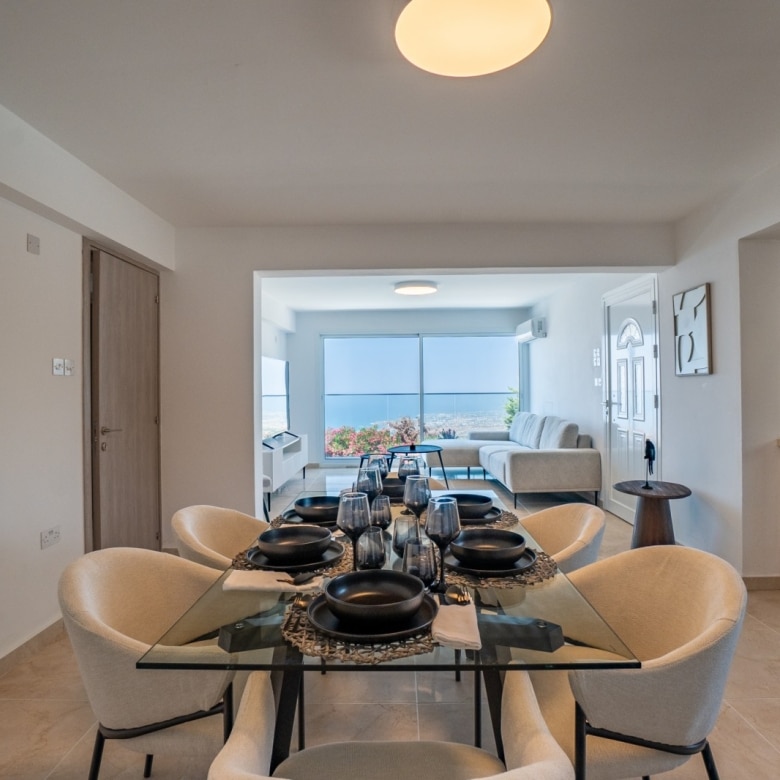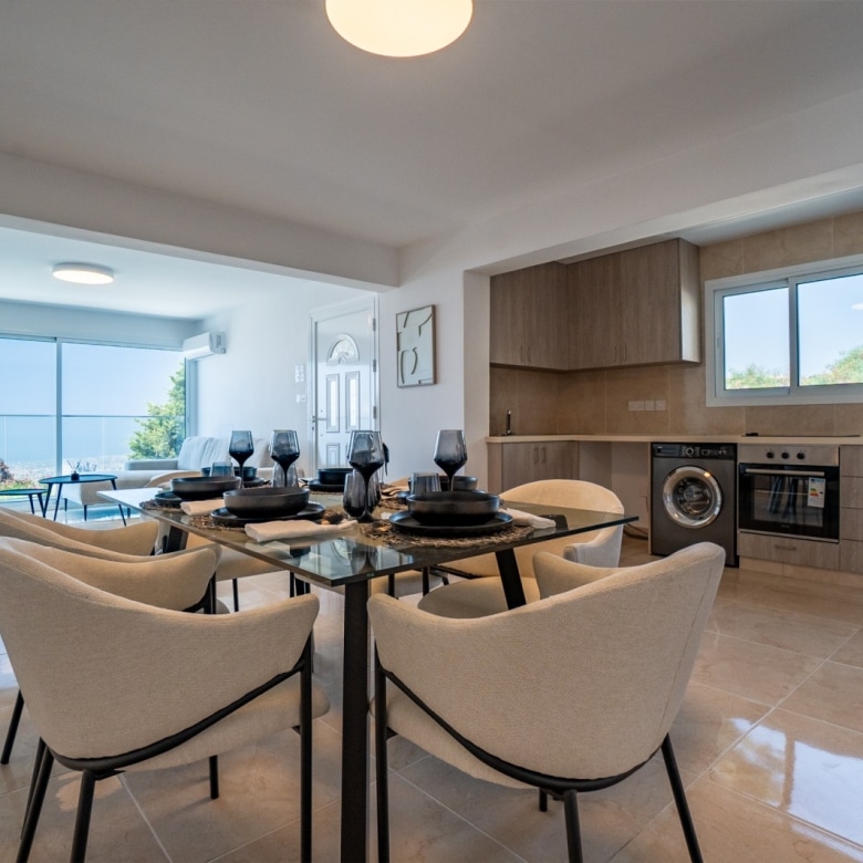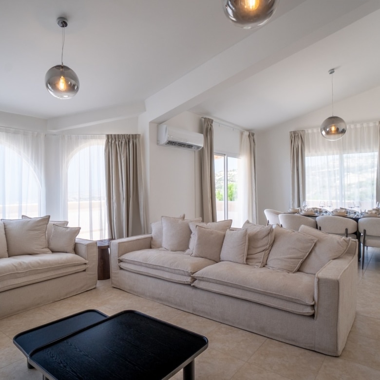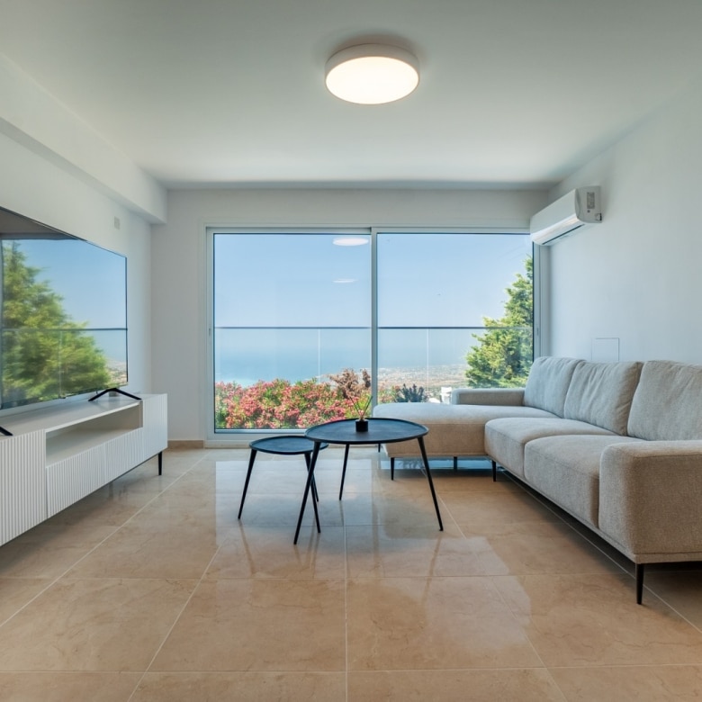 A luxury detached five-bedroom villa elegantly set on the peaks of the St. Neophytos mountains commanding one of the finest unobstructed views over Pafos. The quiet location offers the peaceful lifestyle with Pafos town, offering many amenities, only a 10 minute drive away. Built to the highest standards, we have taken advantage of a convenient elevation and added an extra lower ground consisting of one bedroom, kitchen, bathroom and sitting room. This lower ground can be used as a self-contained apartment by a separate entrance and by an indoor staircase as part of the villa. It has also unobstructed sea view.  All levels of the villa, ground floor, first floor, and the pool area enjoy the same unobstructed panoramic views over Pafos. Plus Annex of 84 square meters.