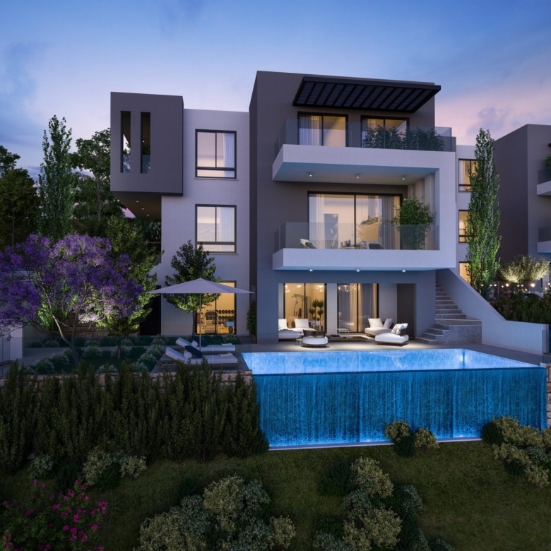 As the first hill on the South West part of Cyprus facing the Mediterranean, Lofos has the island’s best climate. With fresh, clean and mild Mediterranean air, combined with breathtaking sea views, overlooking all Pafos area. Lofos is one of the elite suburbs of Pafos. Built on generous sized plots this project consists of 2 & 3 story villas with 3 bedrooms,3 bathrooms and a spectacular infinity pool with unobstructed views. Just 10 minutes from Pafos center, the International School, Tsada Golf course and the beach and 2 minutes to the village Centre, no wonder it is the ideal location for permanent living. These stunning two and three story villas are designed in such a way for you to enjoy this amazing view and witness the most stunning sunsets over the water. Being on the hillside you can be assured that this is one view you will never lose.
