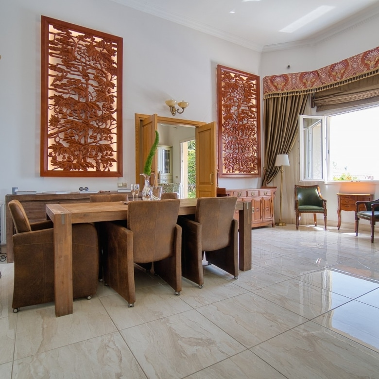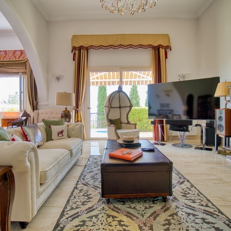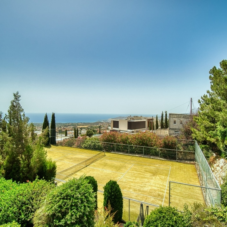 Property offers mature green gardens, full size tennis court, private heated swimming pool all on 3952 m2 plot.