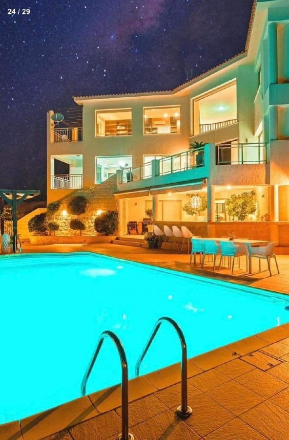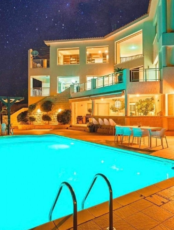 An 8-bedroom luxury villa for sale in Tala village, Paphos A Luxury, 800m², Modern 8-bedroom Villa, with private pool and a landscaped exotic garden. The Villa is located at the edge of a hillside in Tala, Paphos, offering an amazing unobstructed view. This is a private, gated and secure residence in a tranquil area. This fully equipped villa offers the guests a feeling of home, enjoying the amazing views whilst relaxing next to the private pool. Suitable for families with children, as well as for groups of people, the villa can accommodate up to 18 persons. The villa has 8 bedrooms and a large study room. All 8 bedrooms have double beds , 6 bedrooms have 1 double bed in each and one has 2 double beds 5 bedrooms are en suite with a shower, toilet and sink. Facilities: Panoramic Views 7 Bathrooms  Jacuzzi  Air conditioning units in all rooms Central heating Fire place 3 living.