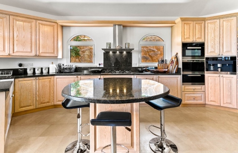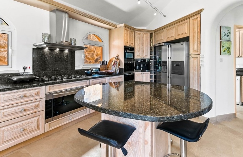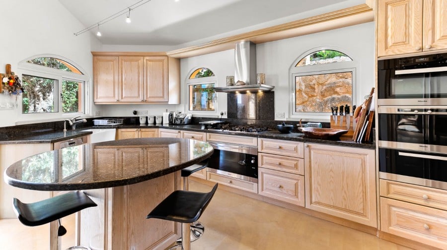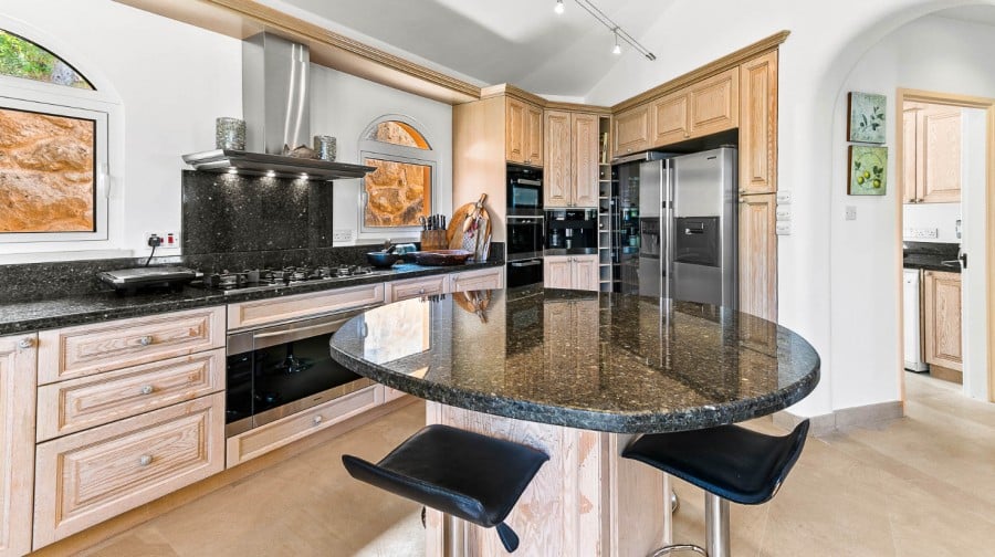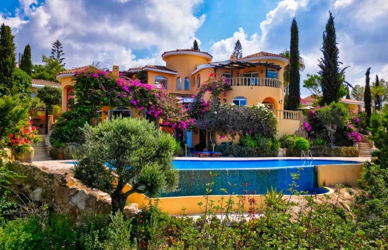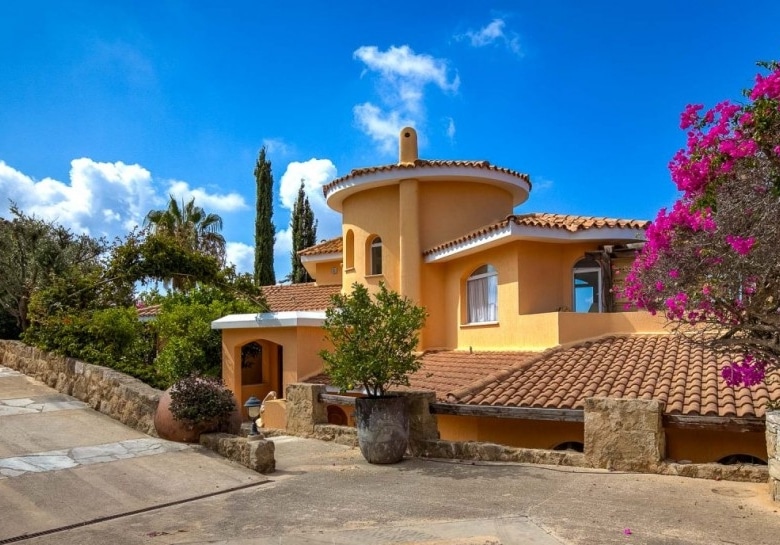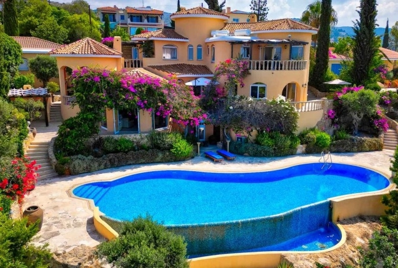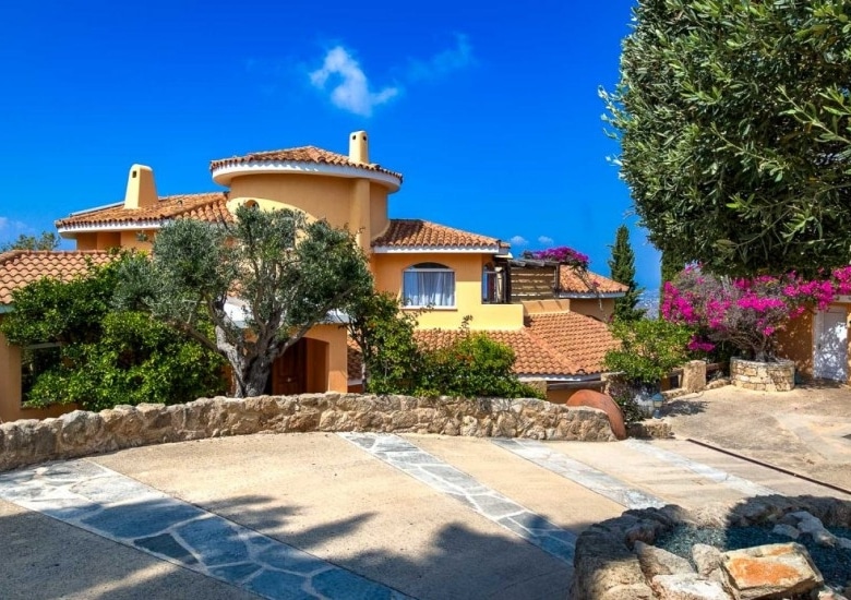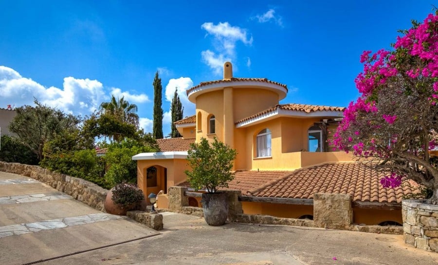 Experience the pinnacle of luxury living in this meticulously designed 4-bedroom Super Villa, perched high in the hills of Koili, Tala. This architectural masterpiece offers panoramic views that stretch before you encompassing the stunning coastline from Paphos Airport to the captivating Coral Bay and beyond. This is more than a home; it’s a work of art, designed to elevate your lifestyle to new heights. This villa offers the perfect blend of tranquility and accessibility. You’ll find yourself surrounded by the natural beauty of Cyprus while still being just a short drive from the vibrant city of Paphos. From an interesting hall entrance with views from every angle of this amazing home you step into the sunken living room with its elegantly curved walls designed to maximize the stunning vista. High ceilings provide the perfect canvas for bespoke artwork and allow ample space for carefully selected interior design pieces that will complement your extraordinary lifestyle. The gourmet kitchen, adorned with granite countertops and a centre island, is a chef’s dream come true. It seamlessly flows into an outdoor kitchen and a spacious round covered dining veranda. Imagine hosting memorable dinners against the backdrop of a spectacular sunset. Every day will feel like a dream as you wake up to breathtaking views from the comfort of your own private haven. The entire top floor is dedicated to the Master Bedroom, a sanctuary of relaxation and opulence. Gaze out over the Mediterranean from your bed or bath and let the beauty of the surroundings wash over you. Three further en-suite bedrooms each have their own eclectic design and private terraces to enjoy and unwind whilst watching the perfect sun set on yet another amazing day in Paradise. Infinity Pool Oasis. Outside, an 18-metre infinity pool invites you to cool off while enjoying the unobstructed views of the azure sea below. The masterfully designed and landscaped gardens provide both privacy and tranquility, creating a serene oasis in which to relax and unwind. With 378 square meters of covered area on a generous 1600-square-meter plot, this villa is an embodiment of luxury living. The undulating walls and interesting turrets nestled into the hills above Paphos add character and charm to this architectural marvel. This villa represents the epitome of luxury and bespoke design. It’s not just a property; it’s a masterpiece that tells a story of impeccable taste and architectural brilliance.