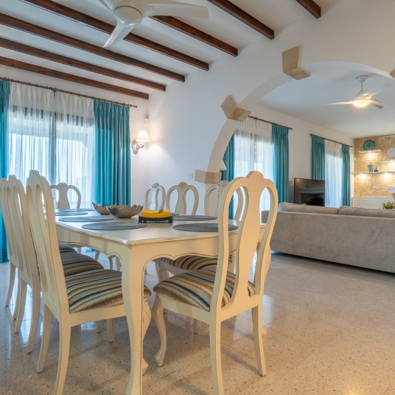 The villa is just moments away from the prestigious Kamares Country Club, offering access to tennis courts, a swimming pool, and an excellent restaurant. For lovers of history and culture, the 12th-century Monastery of St. Neophytos is also nearby.