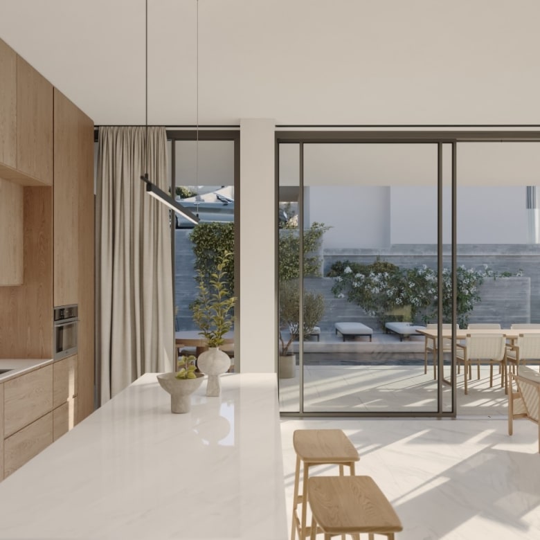 These private villas offer a unique combination of luxury and nature, providing an unparalleled living experience. The location in Tremithousa village offers a peaceful and tranquil atmosphere while still being close to the city centre and essential amenities. The villas are designed to take full advantage of the stunning views and natural surroundings by featuring large windows, lounge areas, and an indoor outdoor flow. The layout of the villas is also carefully considered, with the first floor dedicated to living spaces, one bedroom and parking for two cars, while the ground floor features four spacious bedrooms. The outdoor areas are equally impressive, featuring a large infinity pool, sun deck, outdoor BBQ and dining area and landscaped gardens, providing the perfect place to relax and entertain guests. For those who are looking for the ultimate in privacy, proximity and natural sanctuary, these villas in Paphos , Cyprus are a perfect choice. They offer a level of luxury and comfort that is unmatched in the area, and are sure to exceed even the most discerning buyer’s expectations.