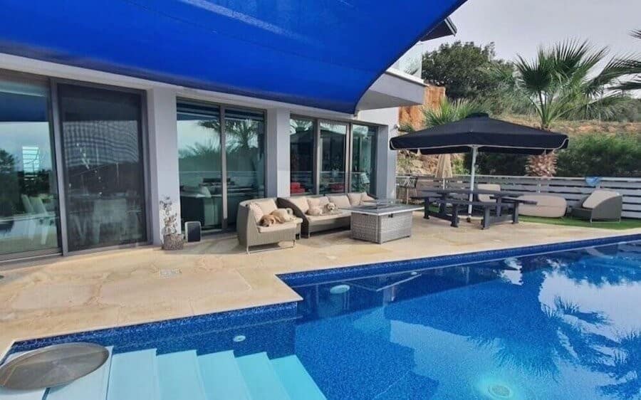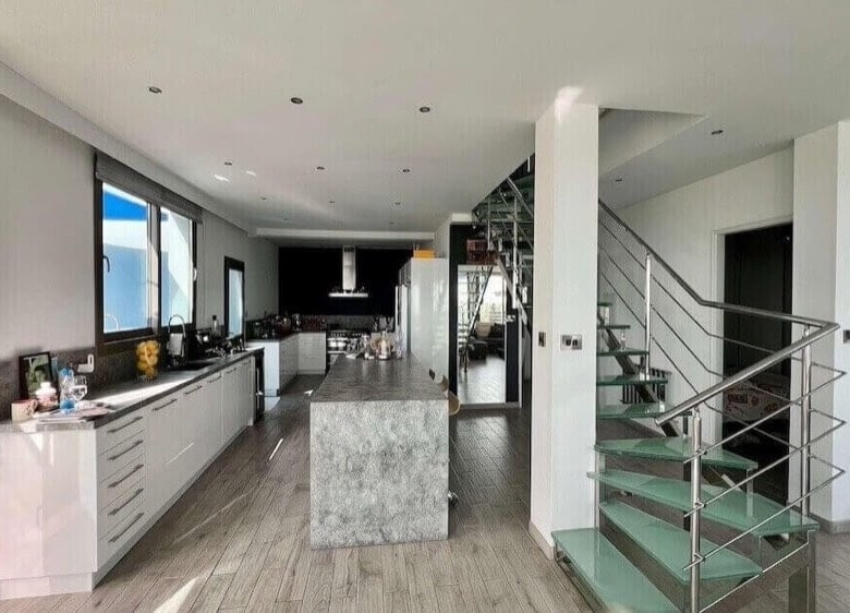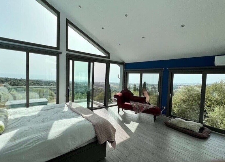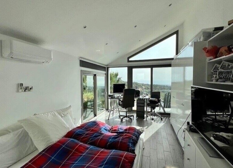 Nestled amidst the picturesque hills of Tremithousa, this exquisite 3-bedroom house offers a blend of modern comfort and serene surroundings. Boasting an ensuite master bedroom and two additional bedrooms – one downstairs and two upstairs – this residence spans across a generous plot of 790m2. With a total area of 175m2, the main house features state-of-the-art amenities including underfloor heating, a sturdy steel frame construction, and premium wool insulation for optimal comfort and energy efficiency. Its exterior is adorned with tasteful rendering while the interior boasts expertly plastered walls, creating a seamless blend of elegance and functionality. The upper level of the house opens up to a delightful private area, accessible through a door, where one can unwind in a secluded jacuzzi or indulge in a workout session amidst breathtaking views of Paphos and the sparkling sea. The heart of the home lies in its open-plan design, seamlessly integrating the kitchen, living, and dining areas into one expansive space. Here, walls are replaced with expansive windows that not only flood the interiors with natural light but also offer captivating vistas of the azure sea, providing a constant reminder of the beauty that surrounds this idyllic retreat. Additionally, this property includes a separate, gated 40m2 studio set on a spacious 375m² plot, offering versatility and additional space. This studio presents an excellent opportunity for generating income, whether through Airbnb short-term rentals or long-term tenancy. Situated on Tremithousa Hill, this property boasts breathtaking, unobstructed sea views, offering a perfect blend of tranquility and stunning natural beauty.