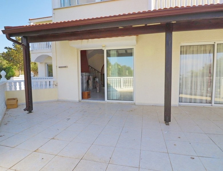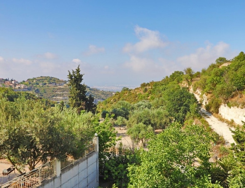 This three bedroom detached villa is situated in the lovely village of Tsada with easy access to Paphos town and it’s amenities and services, within close proximity to the Golf course, the international school and access to the motorway. A long private driveway leads you to the spacious covered parking of this property. Entering this home you will find the very spacious and bright lounge and dining area with a fireplace. Sliding doors are taking you to the large veranda with nice nature and sea views. You will also find the separate kitchen, a double bedroom with two private balconies and the guest cloakroom. Taking the staircase to the 1st floor you will find a very large hallway which can be converted into a study or a fourth bedroom. You will also find the double bedroom , the family bathroom and the master bedroom with en suite facilities. On this level a generous size balcony provides relaxation areas and sea views. Taking the staircase to the lower ground floor you will find the covered parking area, a separate room which can be used as a gym , cinema/ play room etc. In the outdoor area you will find the BBQ area, various plants and trees.