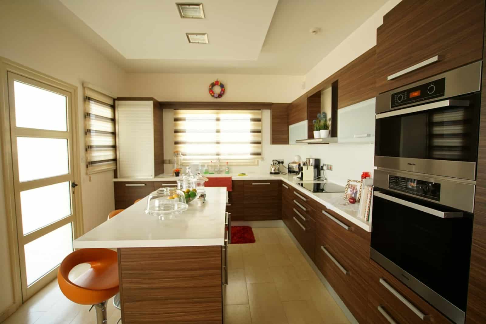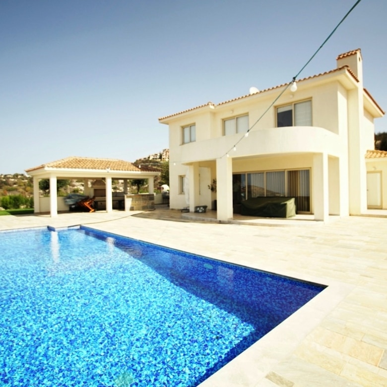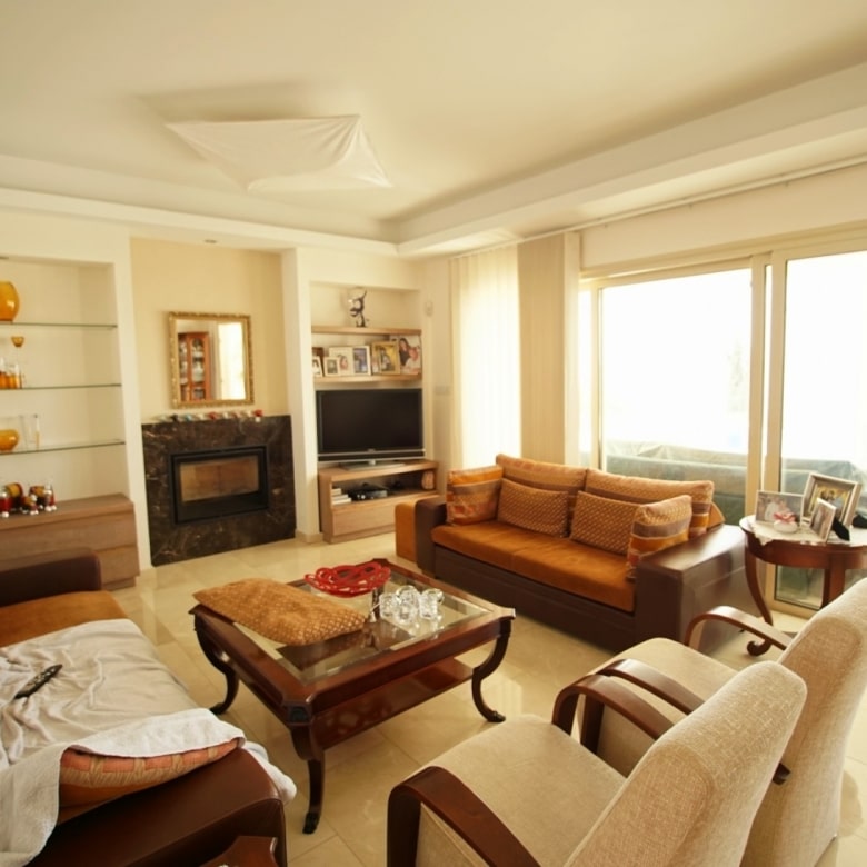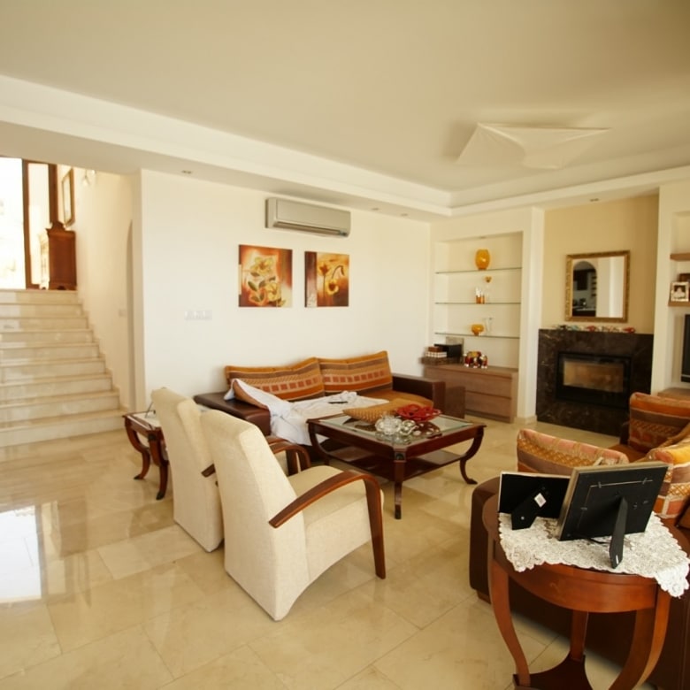 A luxury 6 bedroom villa, located in the center of the village of Tsada in Paphos, built in a 700m. The house is fully airconditioned and has a fireplace in the living room. Downstairs, there is a large open living room area, with a fitted kitchen and a guest WC. It also contains an area for a large dining table. A marble staircase leads to the first floor, where is bedrooms with the fitted wardrobes are. The village of Tsada is about 10 kilometers away from Paphos. Tsada has a school, bank, cafes and a golf course, which is only a few minutes’ drive away.