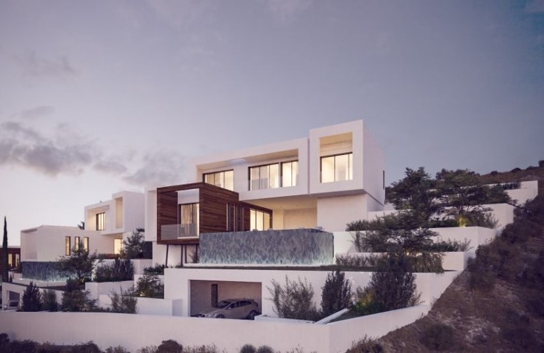 Located in the spectacular setting of the beautiful hills of Tsada village and just a short drive to the city center, we have two luxuriously modern 3-bedroom villas and one 4-bedroom villa for sale in Paphos. This superb development boasts unparalleled sea views and is a mere 4.5 km from one of the best championship 18-hole golf courses in Cyprus. With integrated smart home technology, these modern villas have been carefully designed to take full advantage of their gorgeous sea views and majestic sunsets. All properties enjoy spacious living areas, overflow swimming pools, lush landscaped gardens, and stunning finishes.